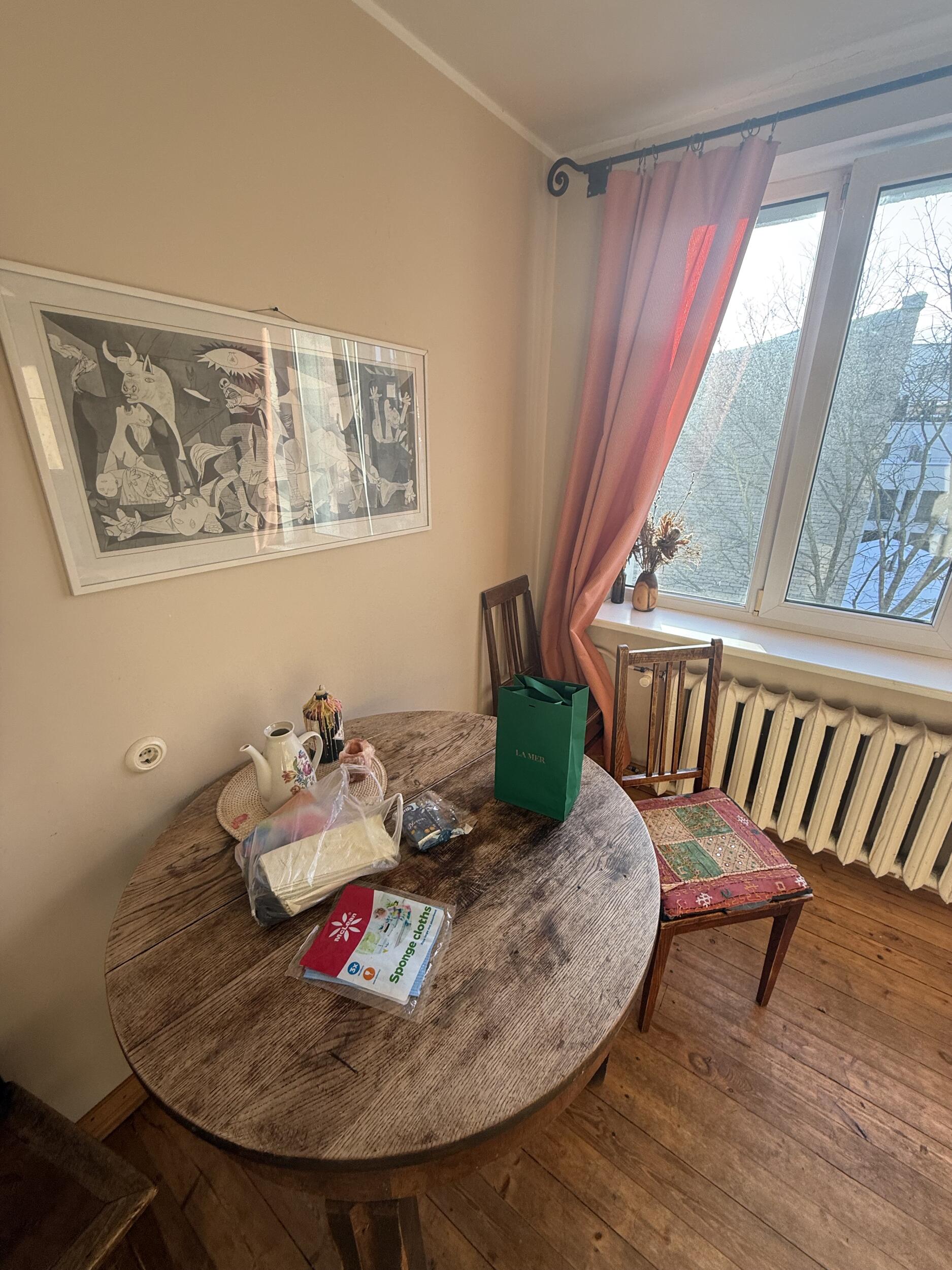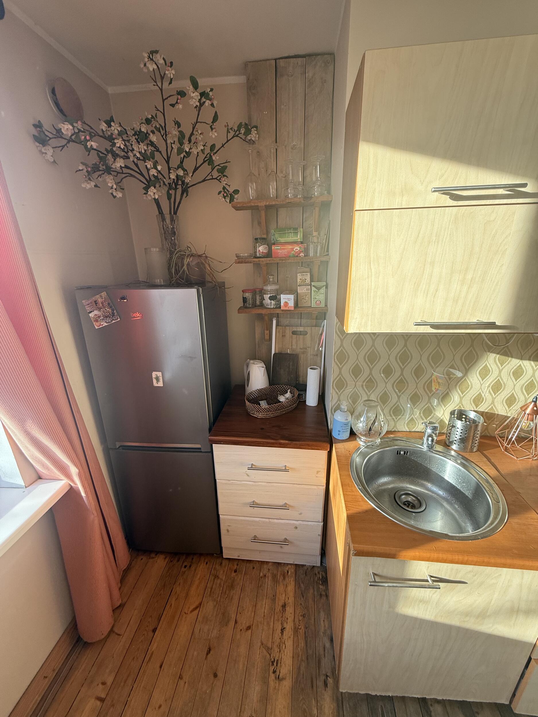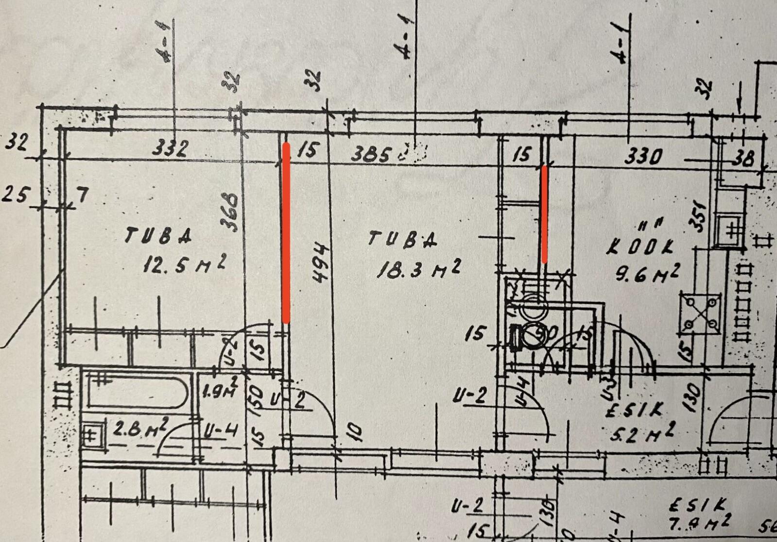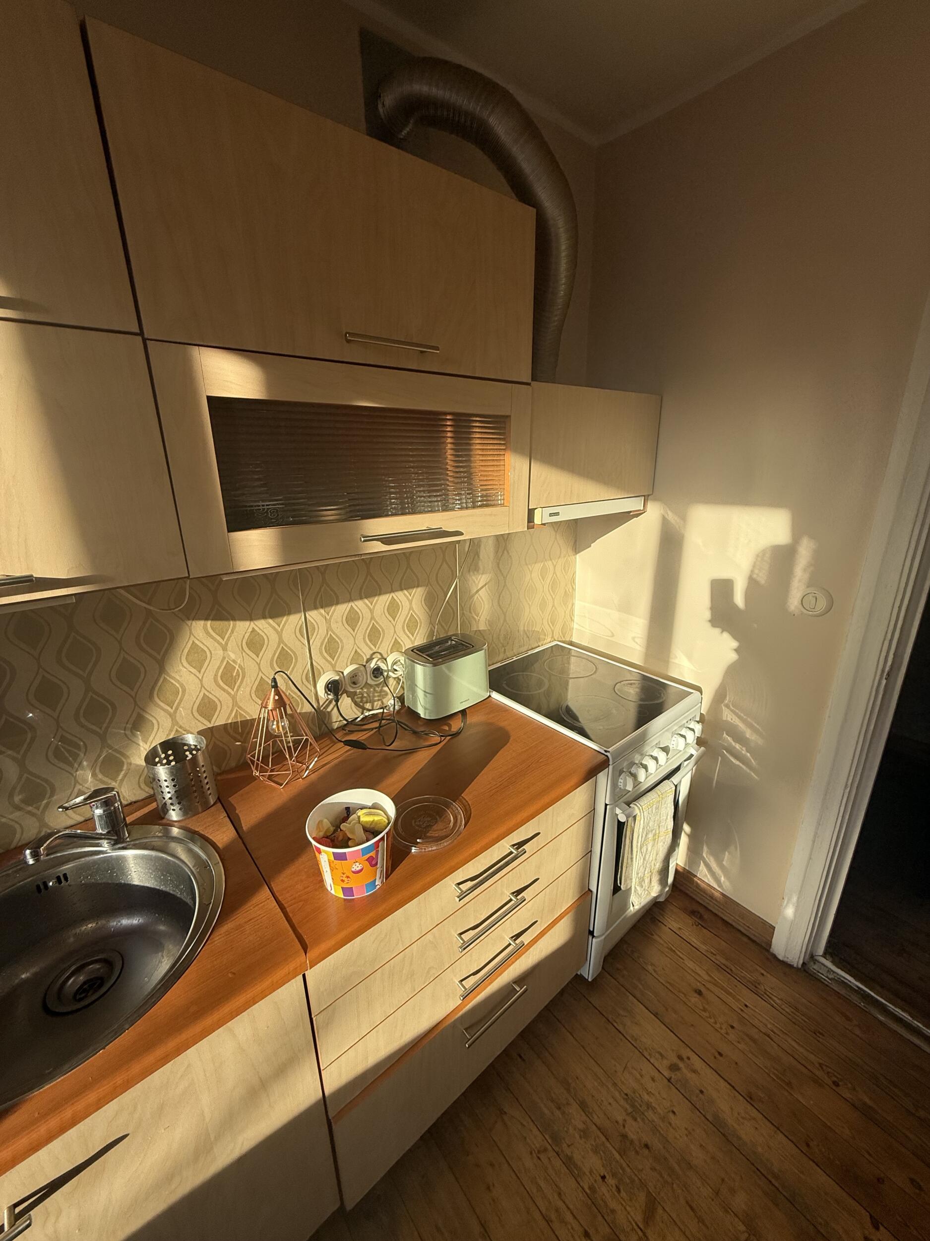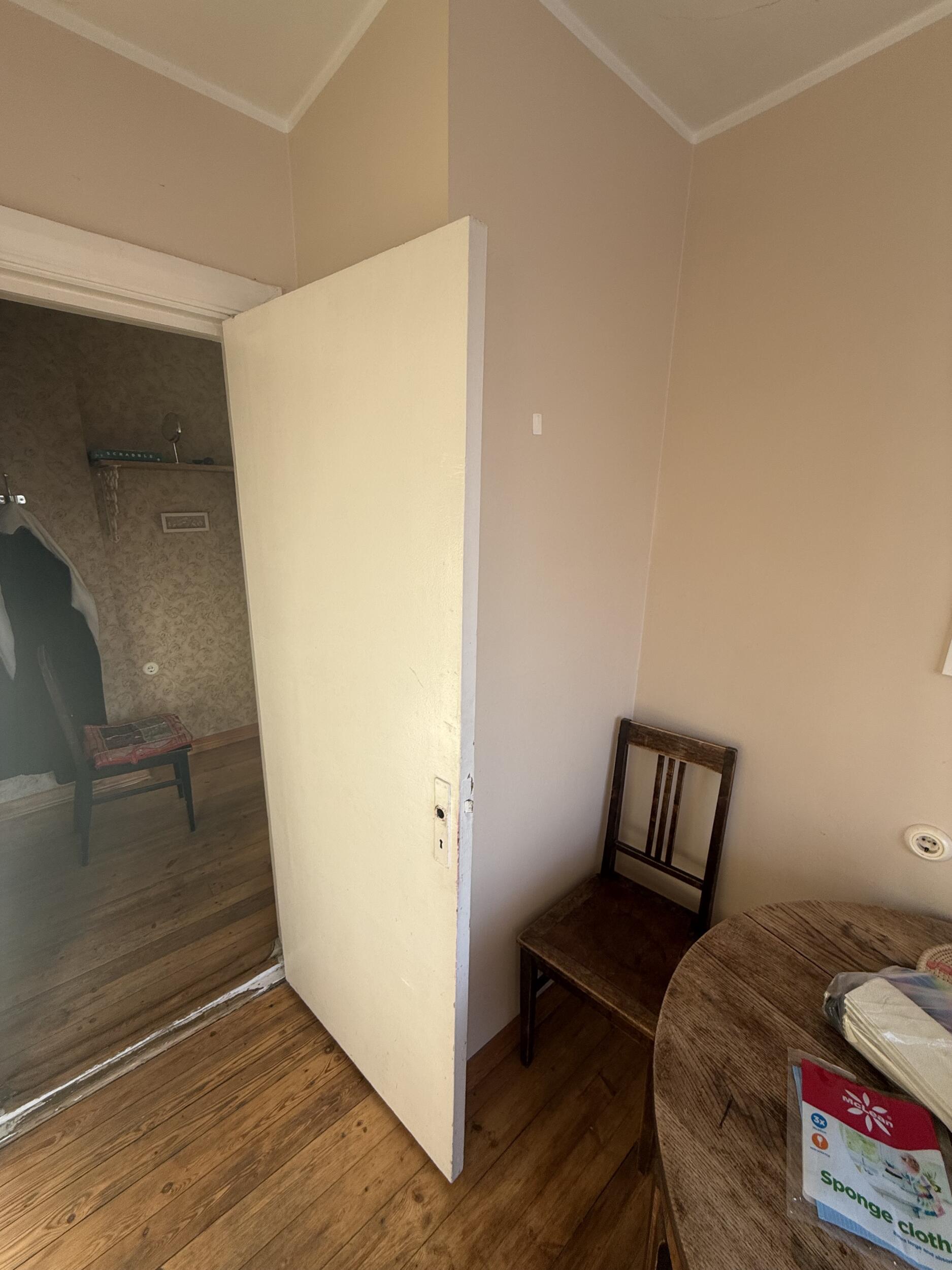 Vaja oleks köögis kinni ehitada olemasolev ukseauk; teha uus ukseauk seina, kus asub praegu seinapilt, plaanil ka märgistatud punase joonega; teha seinad sirgeks; seinad ja lagi viimistleda valmis uue köögi tulekuks. Laes mõningad praod parandada. Olemasolevalt püstakult eemaldada praegune laudis ja kinni ehitada kipsi taha.