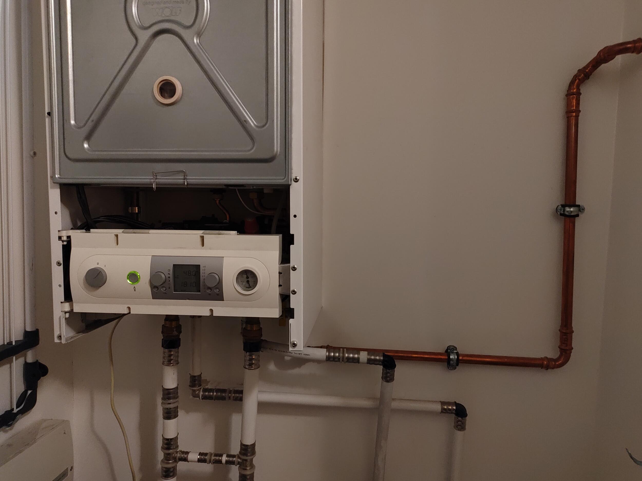 Olemasolev gaasikatel 24kw (Wolf CGG-1K-24). Uus gaasikatel peab sobima vesi põrandaküttele puitpõrandale, ca 100 m2, ca 500 m kontuure (6 tk), optimaalne temperatuur 30-40 kraadi. Lisaks kuuma tarbevee tootmine koos 'mini-boileriga (20-50l), et oleks tagatud koheselt kuuma (ca 50 kraadi) tarbevee saadavus. Tarbevesi on ühe duši jaoks. Olemasolev topelt korsten 60/100 ca 3 m pikk läbi katuse. Kanalisatsioonivalmidus kondensaadi jaoks. Gaasikatel on puitsõrestik seinal, mis on kaetud kahekordse tavalise kipsiga.