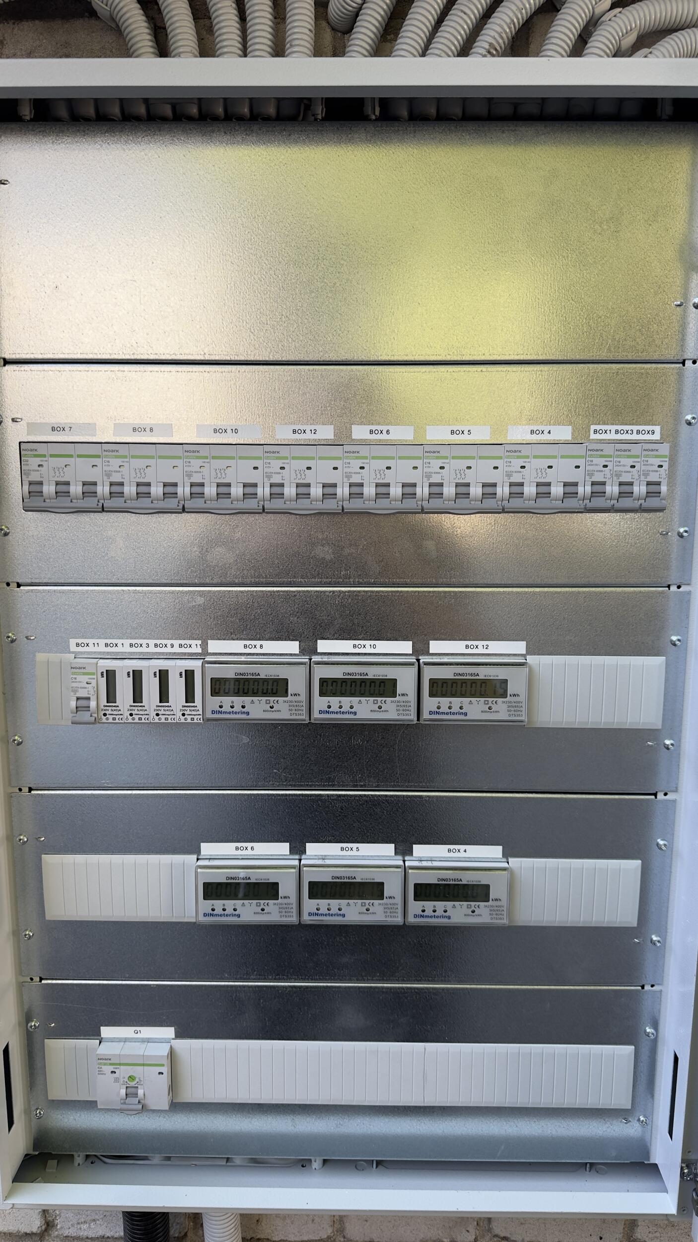 Garaažiühistu elektrisüsteemis on 12 garaažiboksi, millest 3-l on 1-faasiline ja teistel 3-faasiline elekter. 2-l boksil on süsteem eraldatud 1 Elektrilevi arvestiga, ülejäänud 10-le on 1 Elektrilevi arvesti all ja selle all on omakorda 10 arvestit ühistu siseseks arveldamiseks. Hetkel on kogu elektrisüsteem 6A peakaitsme all.