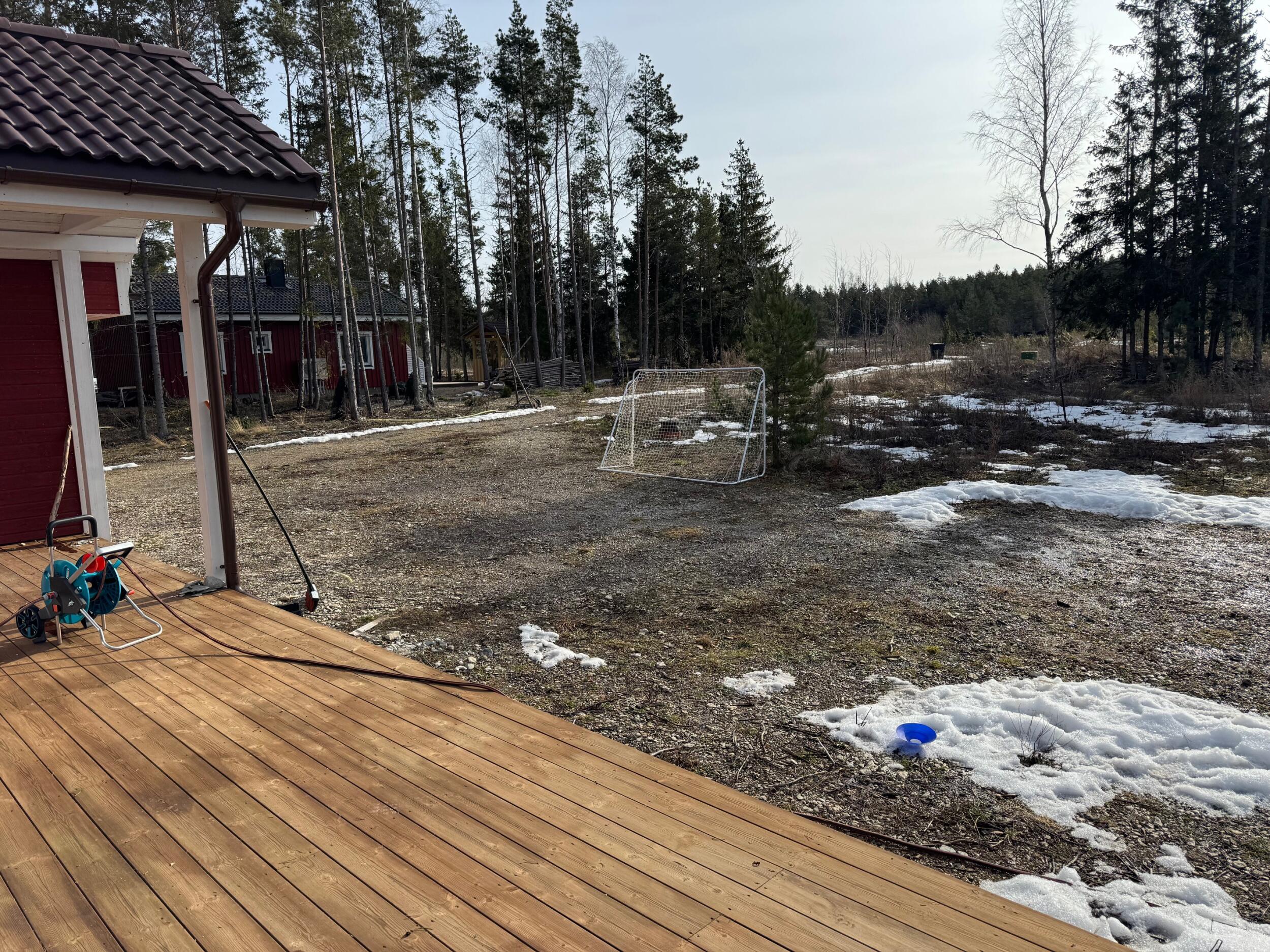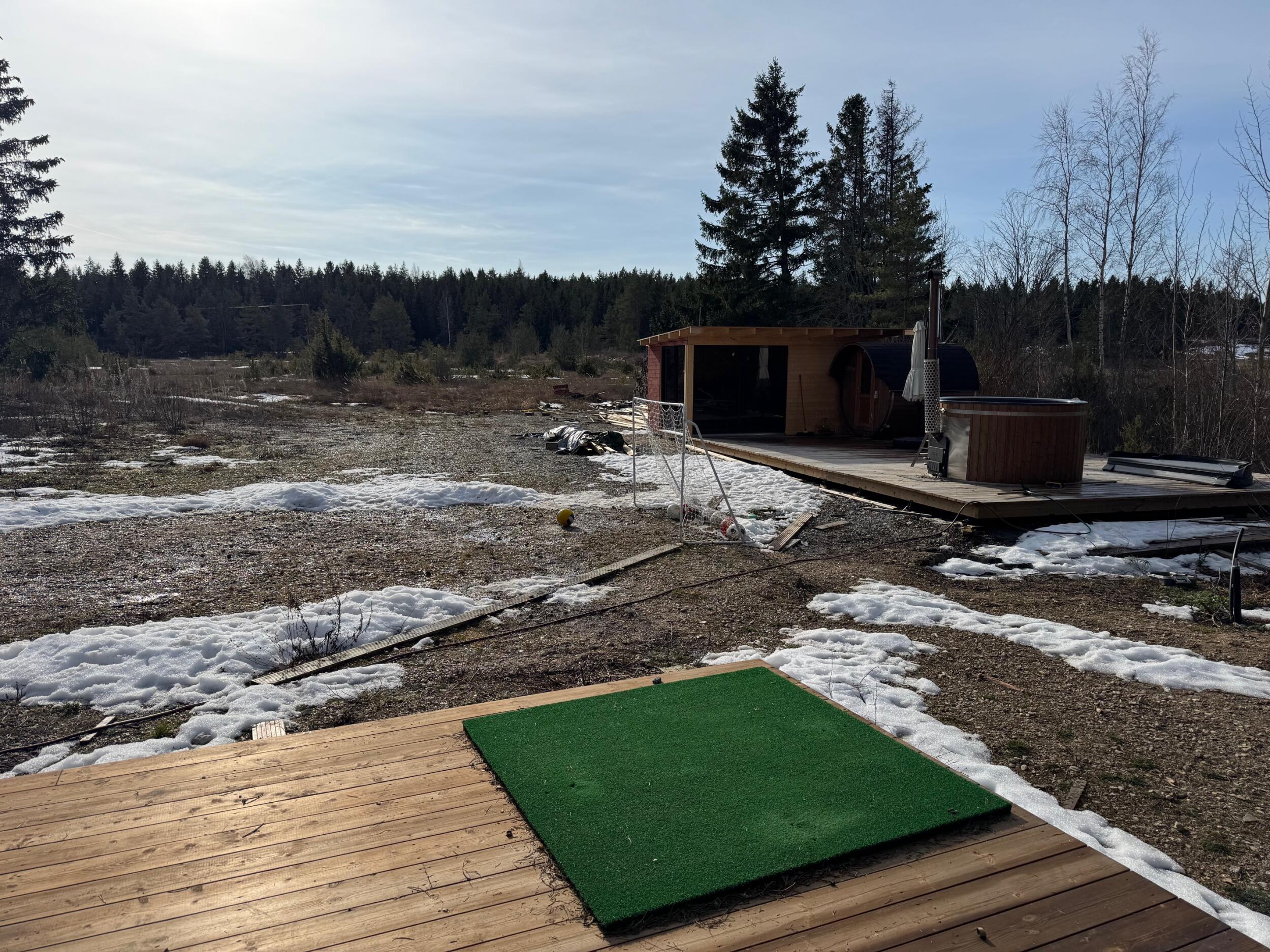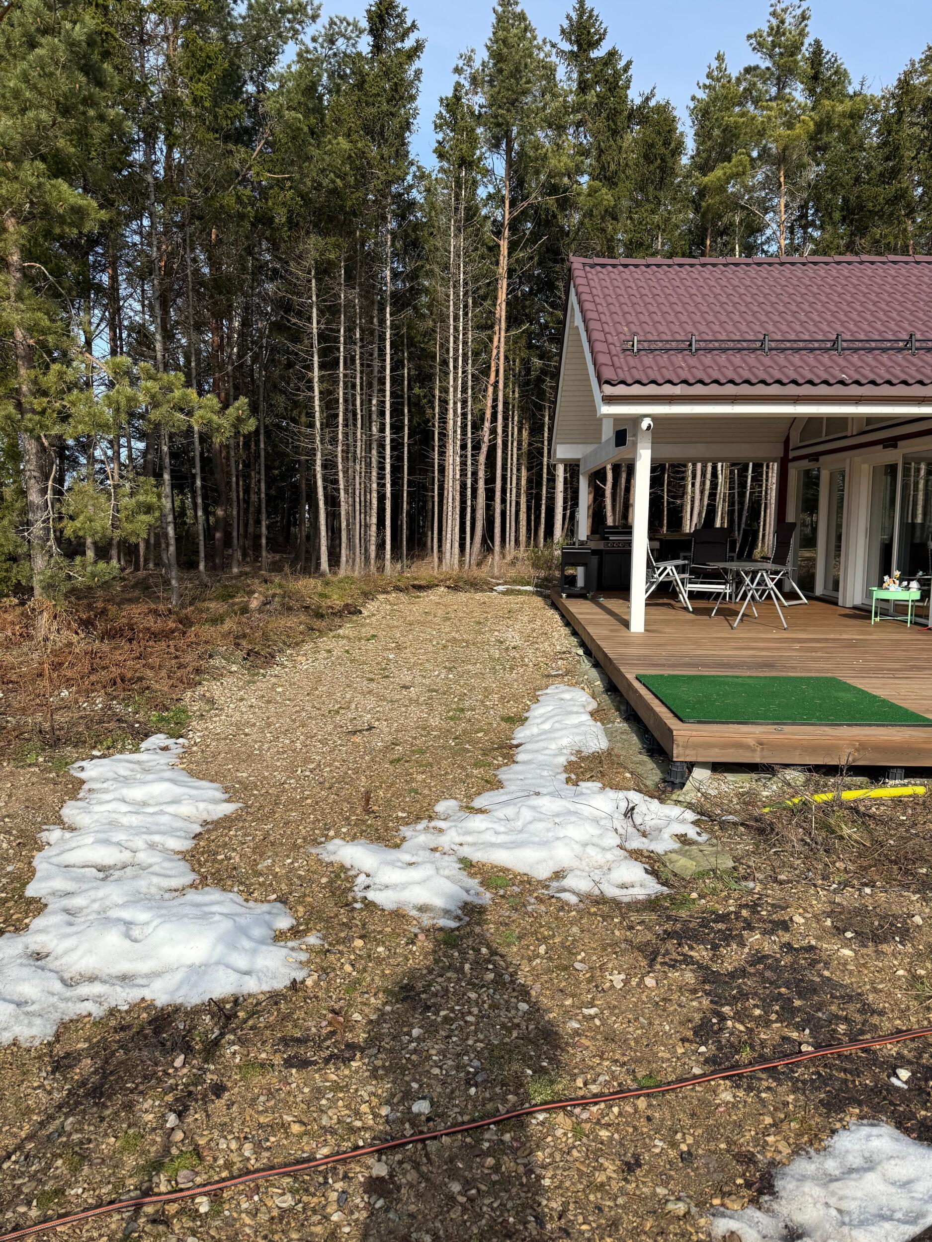 Soovin maja ümbruse korrastada. Tasandada aluspinna, vedada peale ca 10cm kihi mulda ja sinna peale sobiva murukatte. Eraldada äärekiviga tee ja muru vaheline piir. Maja ukse esine ala samuti väheses ulatuses äärekiviga eraldatud ala ning katta tänavakivi või dekoratiivkillustikuga. Üldiselt olen avatud spetsialisti ettepankutele.