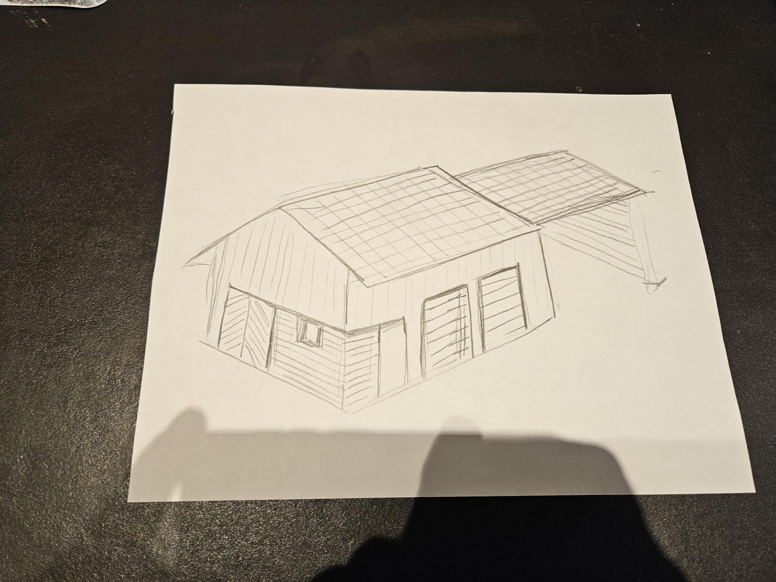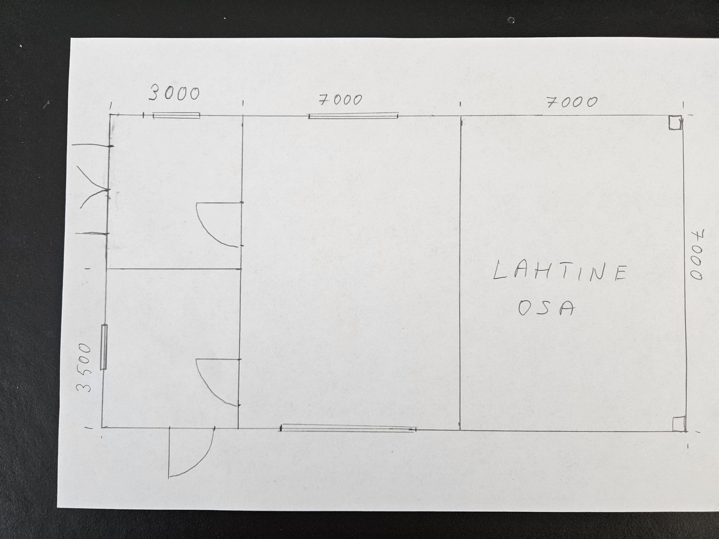 Soovin pakkumist abihoone/garaazi projekteerimisele ja ka ehitusloaks saamiseks vajalike toimingute tegemisele. Hoone suletud osa ca 70m2 lintvundamendil ja lahtine osa ca 50m2 toetub postidele. Seinad puitkarkass, katus fermidel. Katus veidi eritasandil, mõõtudega joonisel on soovitavad sisemöödud. Hetkel majatehas tegeleb tööjooniste tegemisega.