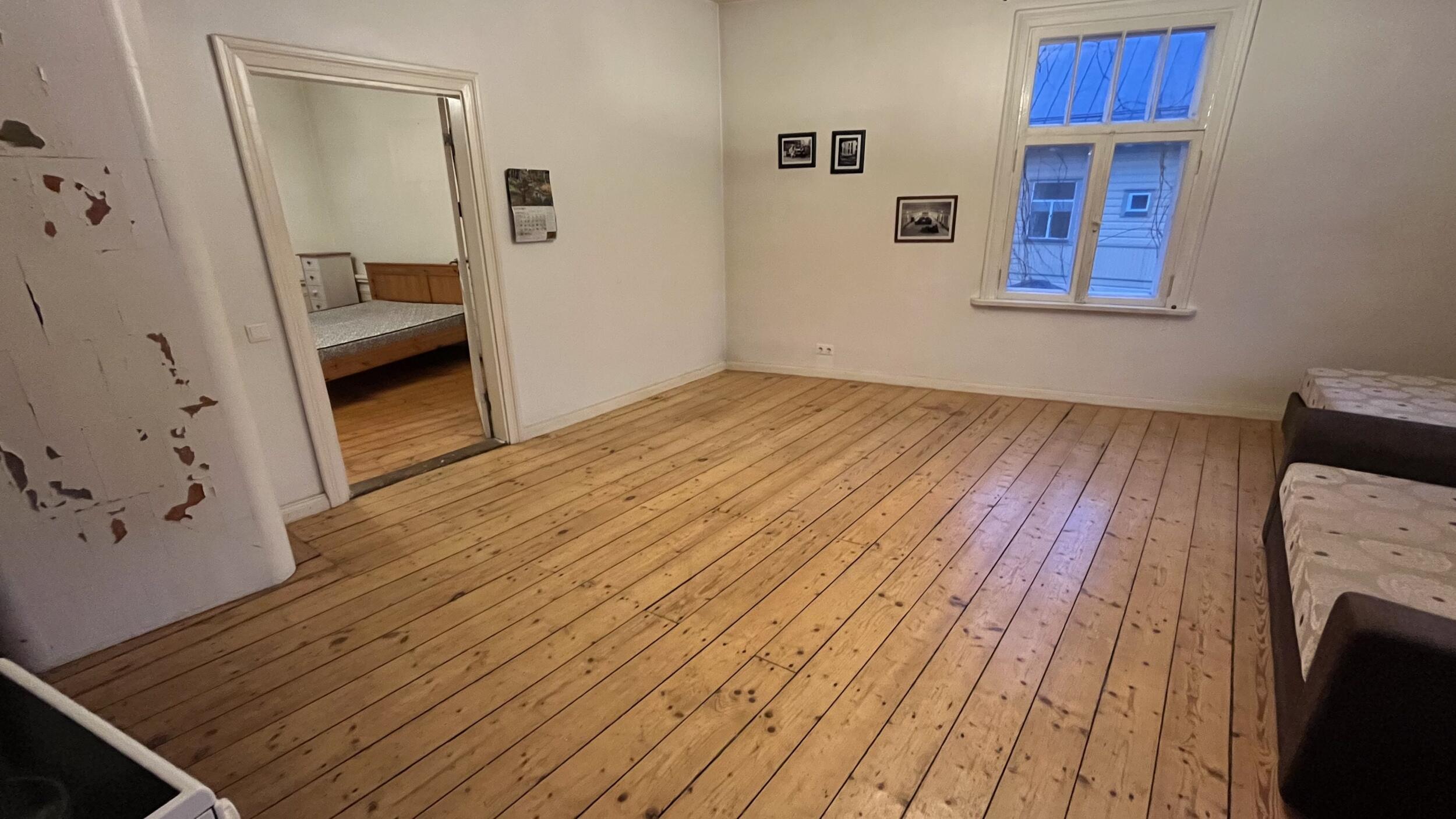 Tarvis oleks köök-elutuba, magamistoa ja esiku põranda lihvimine ja õlitamine. Magamistoa põranda pindala u 19.5 m2, köök-elutoa pindala u 26.8 m2, esiku põrand u 4 m2.