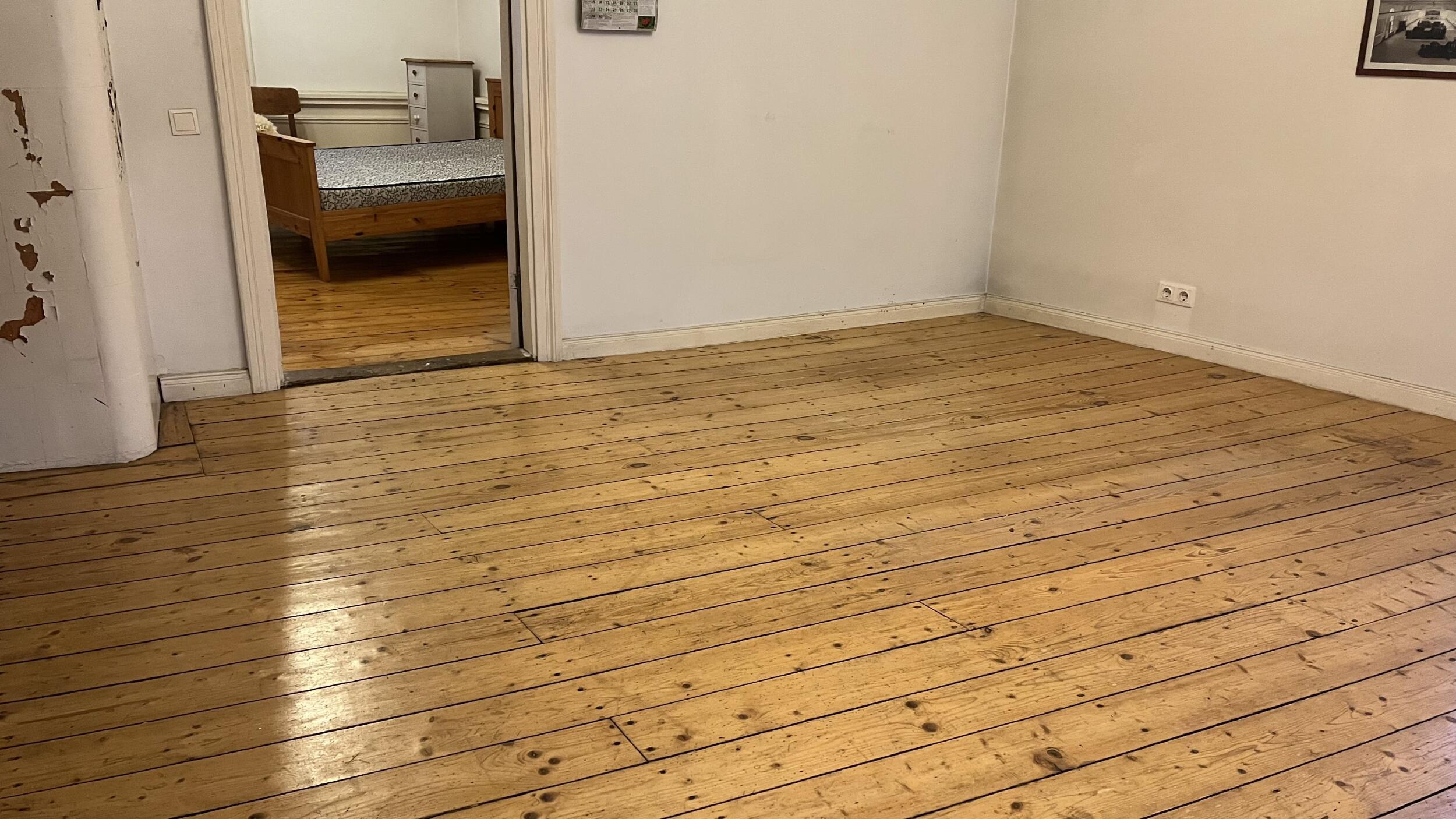 - Kui mõni põrandalaud tuleb välja vahetada, siis peaks uus laud olema võimalikult sarnane olemasolevale - täispuidust kuuse põrandalaud, sarnase laiuse ja paksusega nagu olemasolevad lauad.