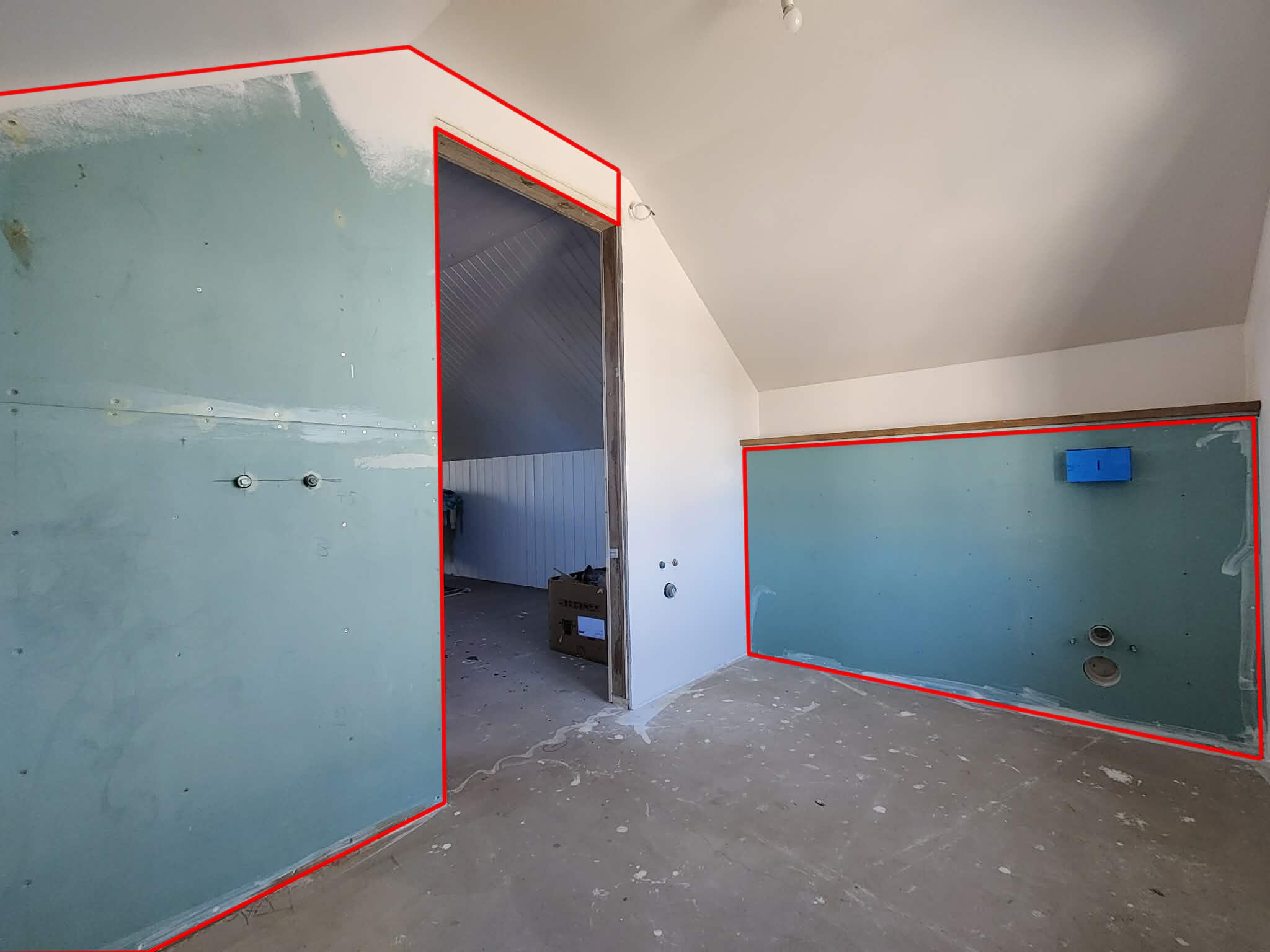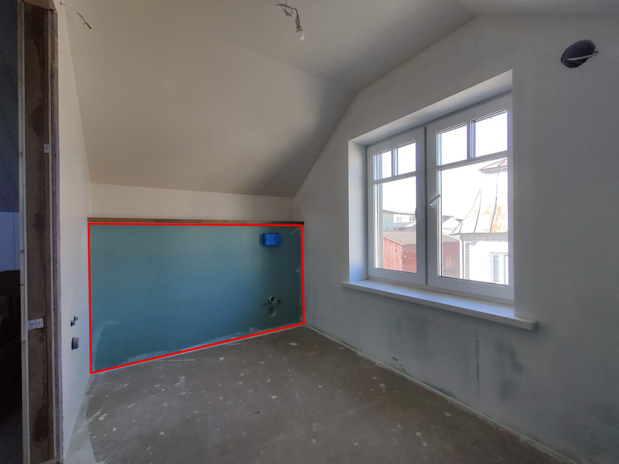 Lisatud fotod ruumist (plaaditavad seinad märgitud punasega) ja joonis mõõtudega.