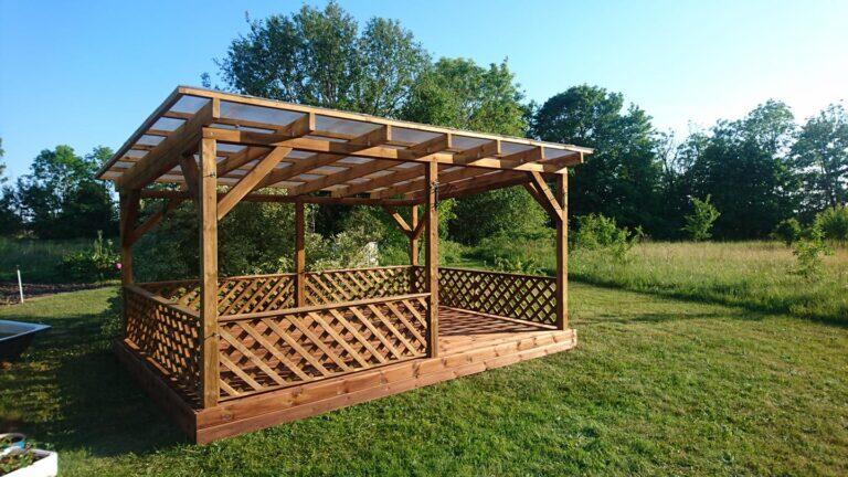 Pakkumise kirjeldus: Pakkumine lähtuvalt hanke kirjeldusest. Katusekonstruktsioon värvitud terassilauaga enam vähem samasse tooni. Katus läbipaistvast plaadist. |