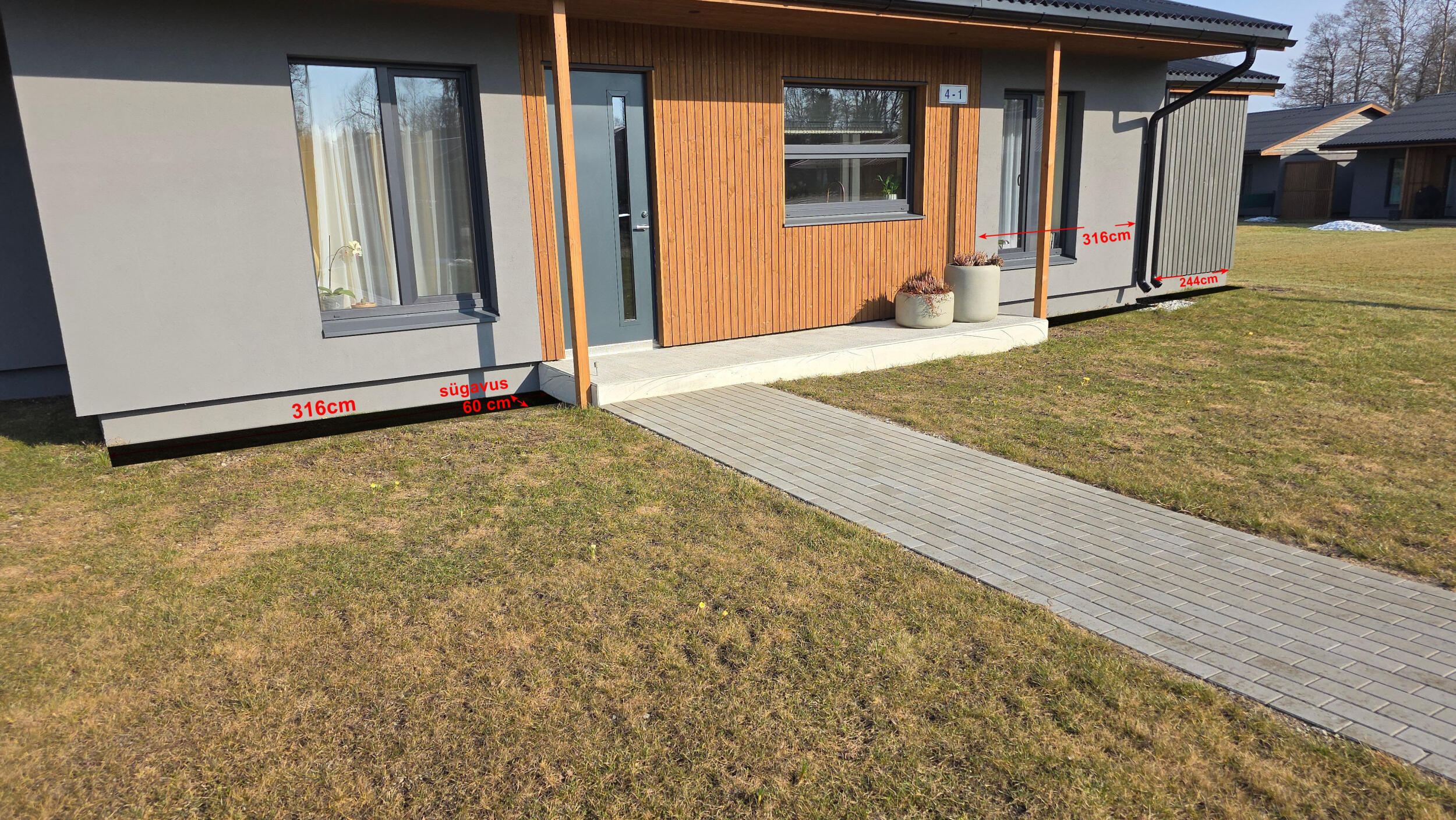 Tänavakivi paigaldus maja ümber, kokku ~23,5 m² (puhaspind, ülekatteta).