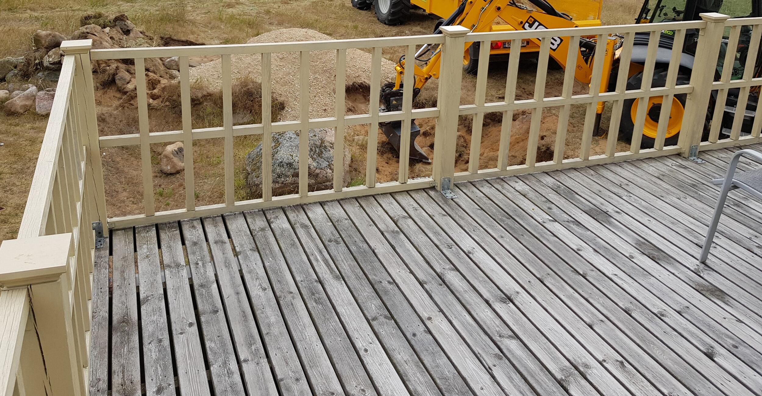 Suvemaja rõdu-terrass, mõõdud 4,5 x 6 m, vaja vana lammutada ja uus samasugune asemele ehitada. 1. Vana terrassi ja piirete lammutamine (utiliseerime ise) 2. Immutatud prussidest alustalade ehitus ja rihtimine 3. Piirete tarvis 95x95mm postide paigaldus 4. 95x28mm immutatud terrassilauast (roheline v pruun) rõdupõranda ehitus 5. Sõrestikpiirete ehitus (nagu vana). Mõõdud: Horisontaalne 45X45mm, vertikaalne 28X45mm, pealislaud 45x120mm 6. Piirete ja postide viimistlemine 2x.