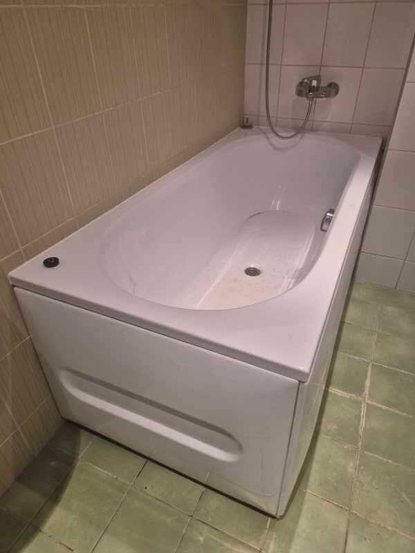 Võimalusel põrand, ca 6 m2, üle plaatida koos vajalike lisatöödega, kuna põranda kalle on vale. Vesi ei jookse vanni all olevasse trappi vaid põranda keskele. Põrandal on elekriline põrandaküte.