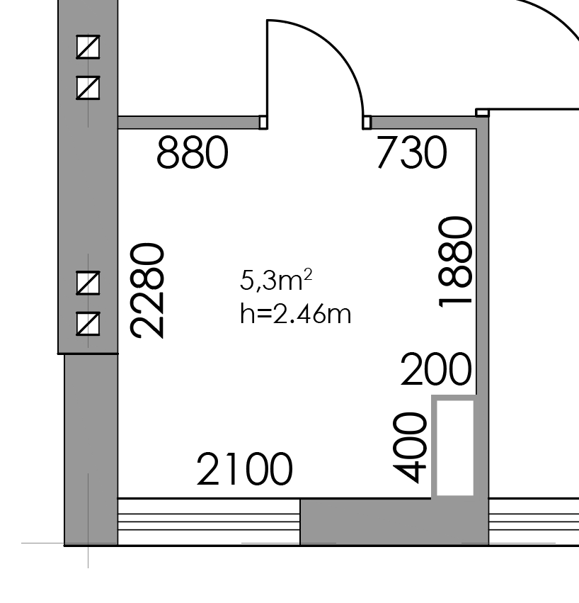 Vannitoa pind 5.3m2, kõrgus 2.46m