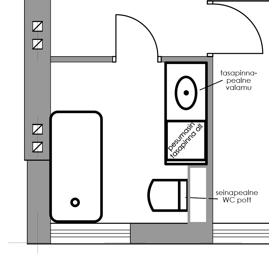 • Veetorude/äravoolude liigutamine ühest seinast teise. (on üldse tehtav?)