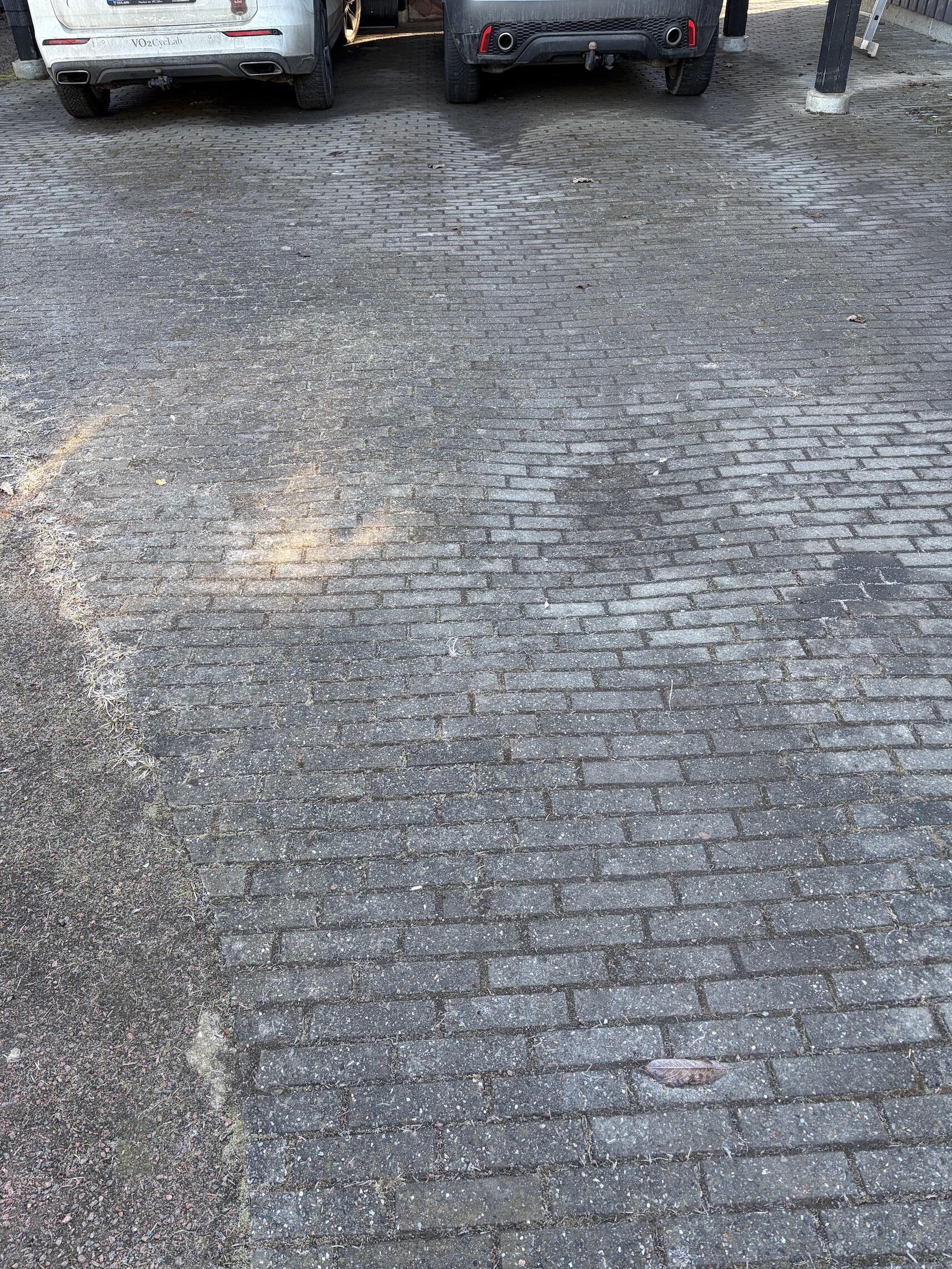 (A) Sellest 119m2 (ümbermõõt ca 79m) on tänavakiviga kaetud, töö tehtud ca 15 aastat tagasi. Korralik põhi olemas. See on ala, kus toimub igapäevaliikus (jalgsi, autoga). Töö on uue tänavakivi paigaldus.