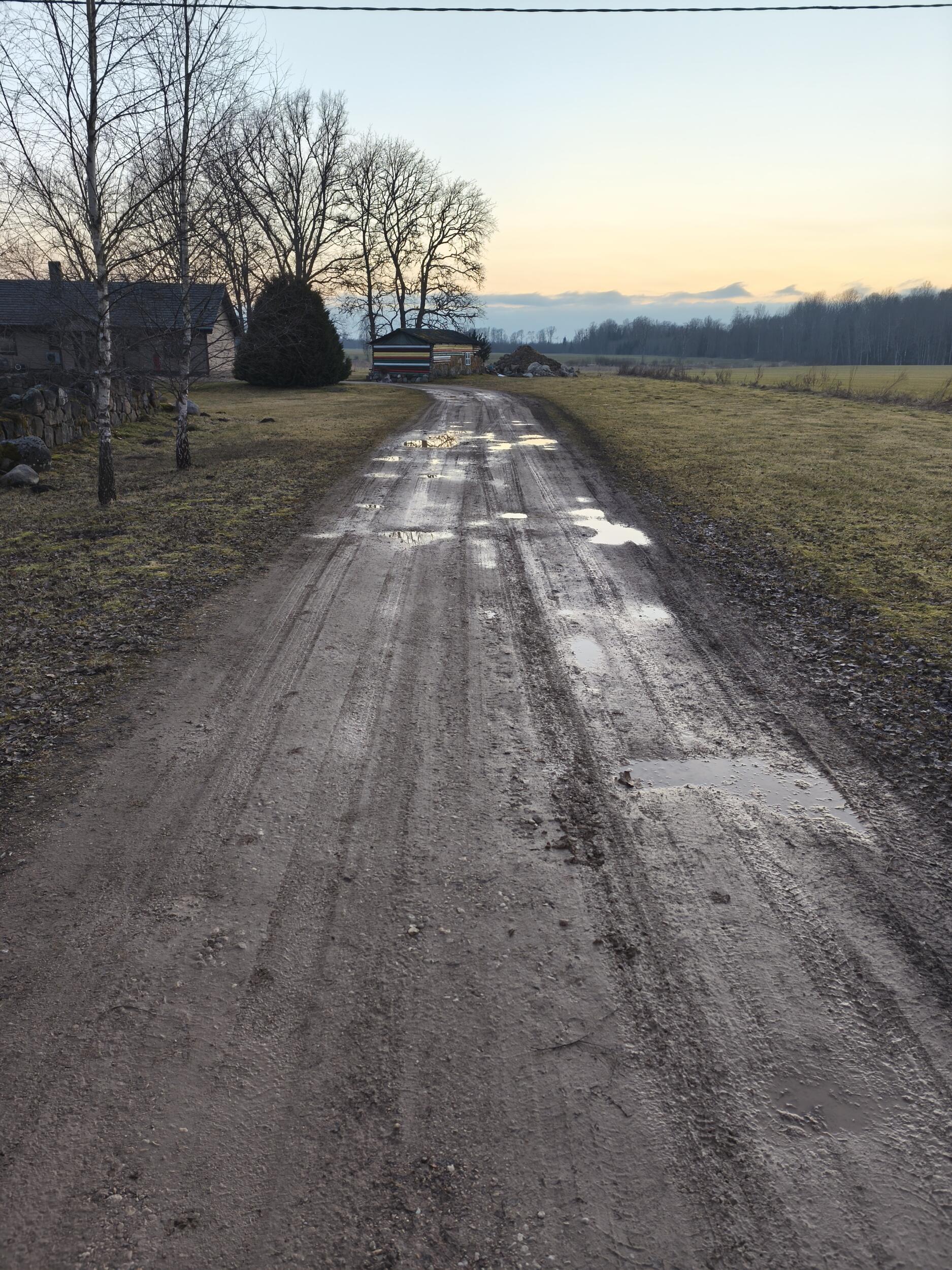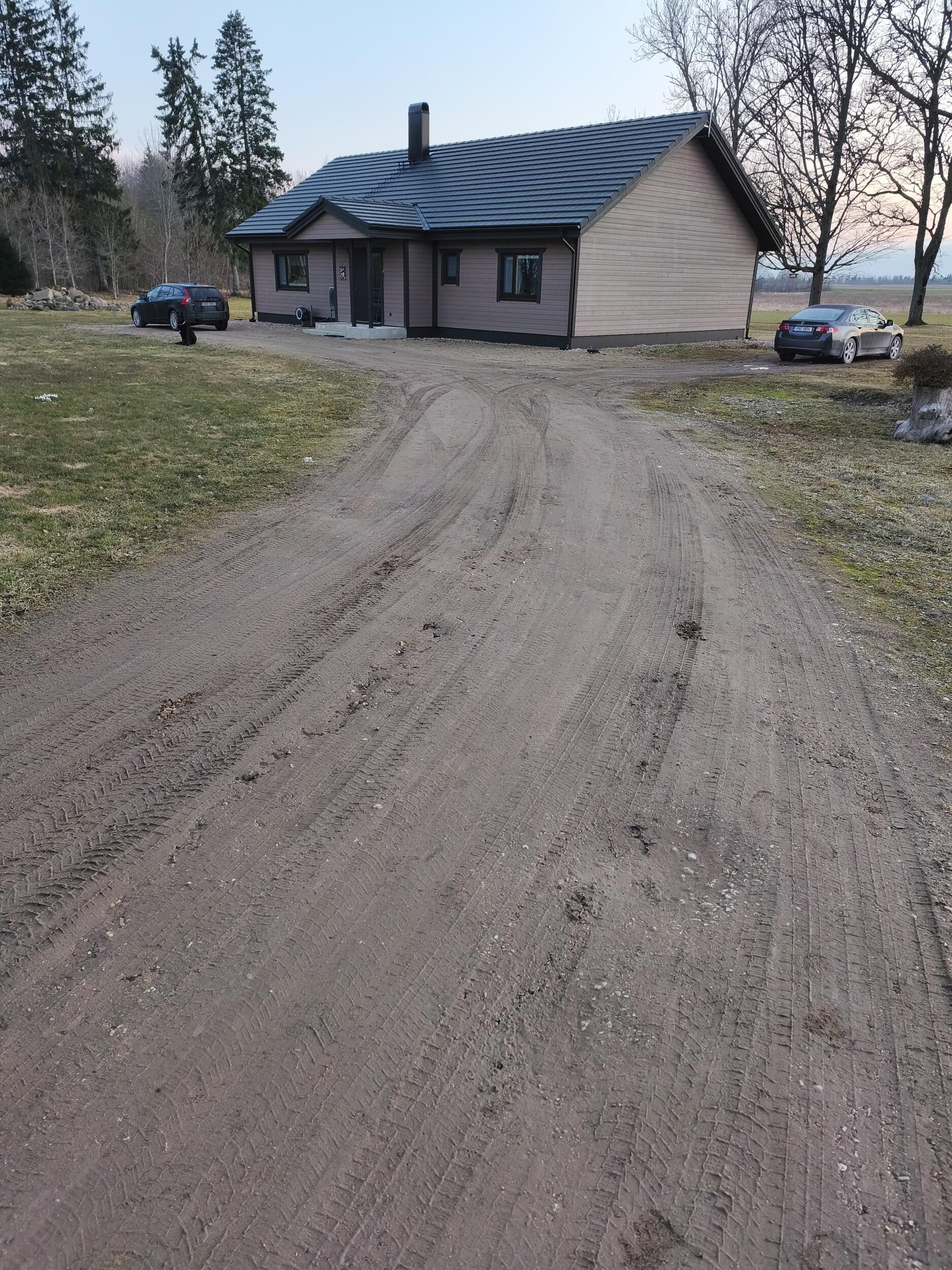 2022 aastal sai rajatud kiirkorras tee majani. Eemaldati pinnasest kogu muld umbes 3,5 meetri laiuselt, seejärel laotati kruus ja tasandati kopaga, et oleks enam-vähem okei. Nüüd on tekkinud suuremad augud, tee lainetab ja on ära vajunud. Samuti on maja ees ja küljel olev parkimisala ära vajunud.