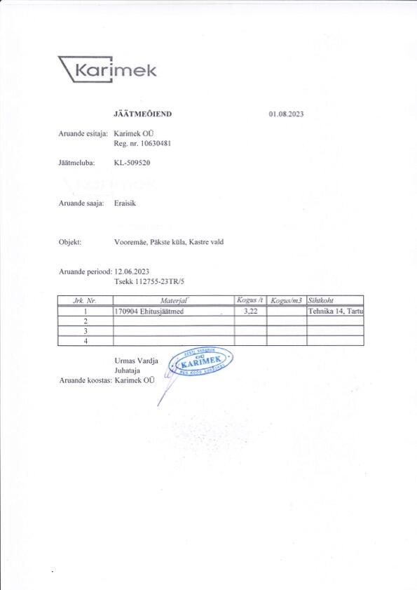 Võin lisada ka hoone vanad plaanid ning dokumendid ehitusjäätmete äraveo kohta.