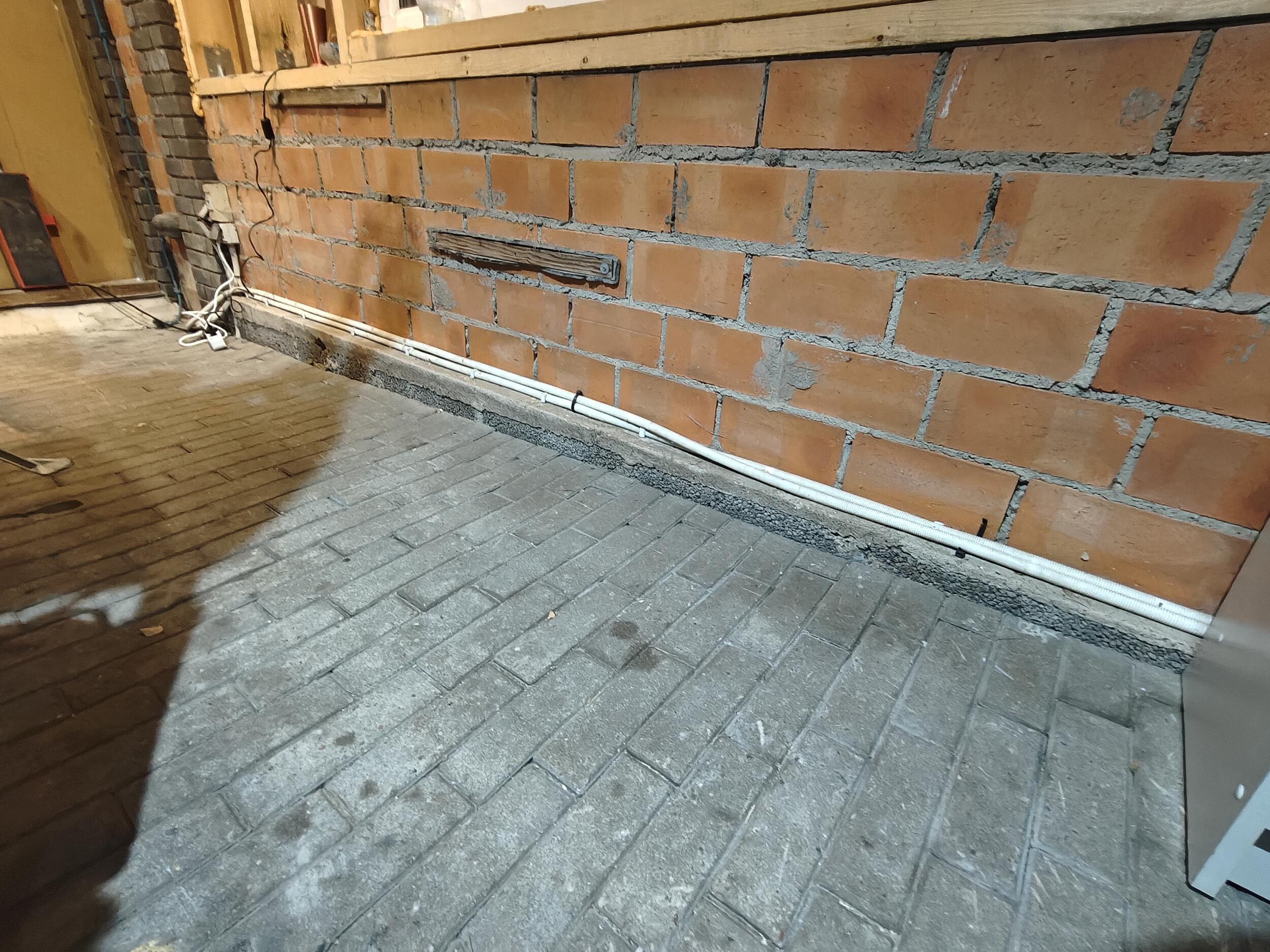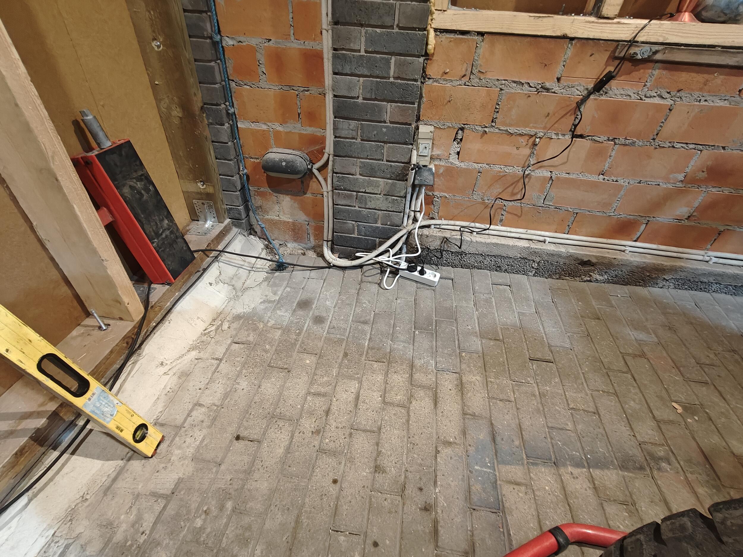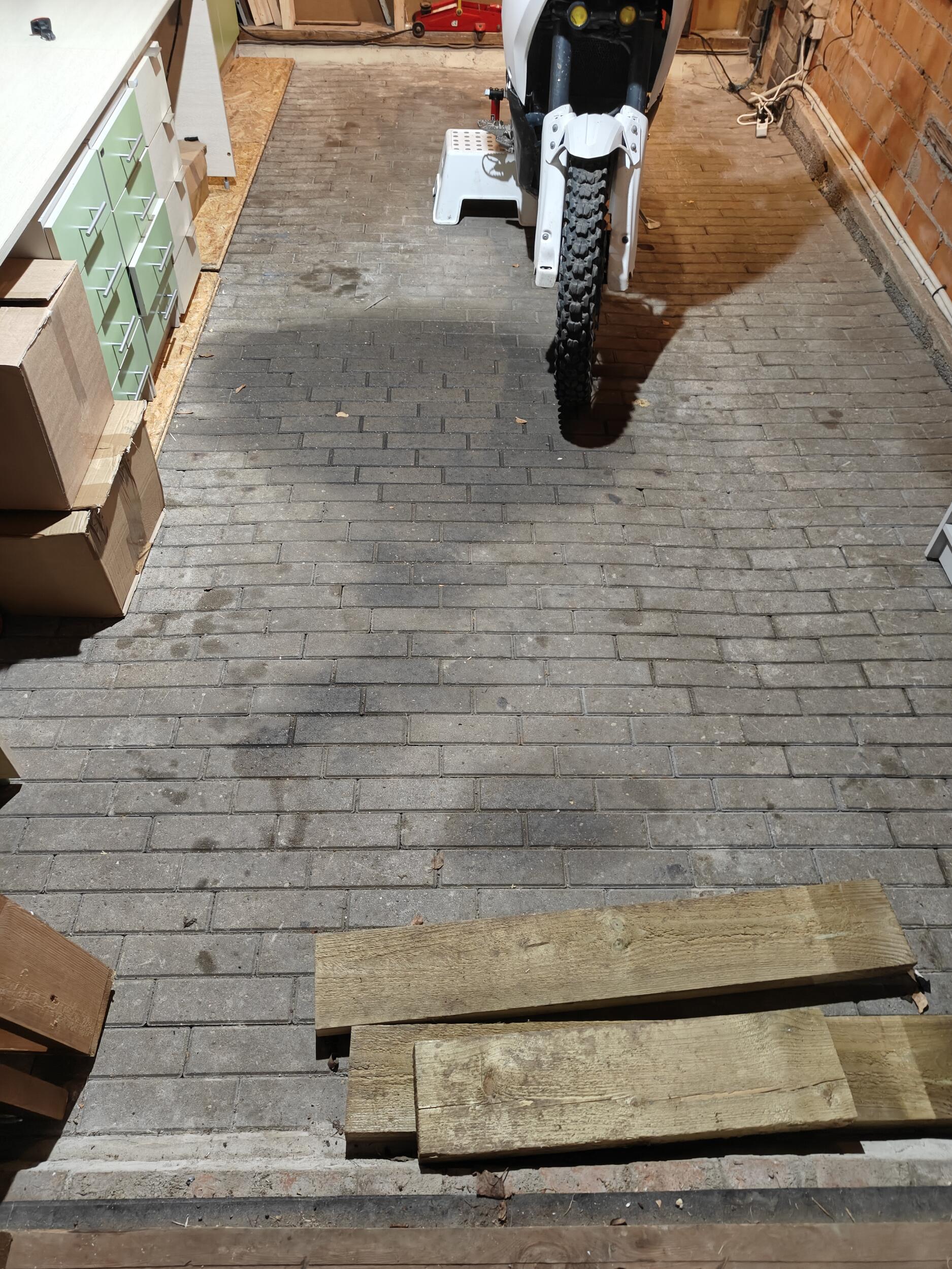 Hetkel on põrandaks kiviparkett ja põrand on kaldega.