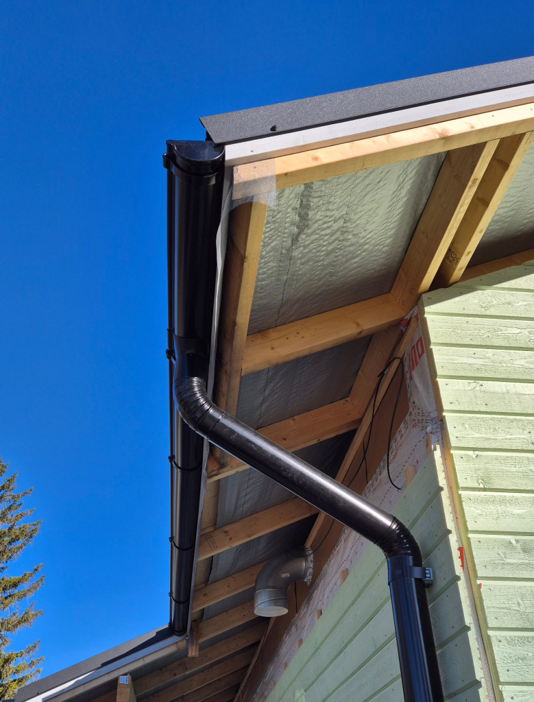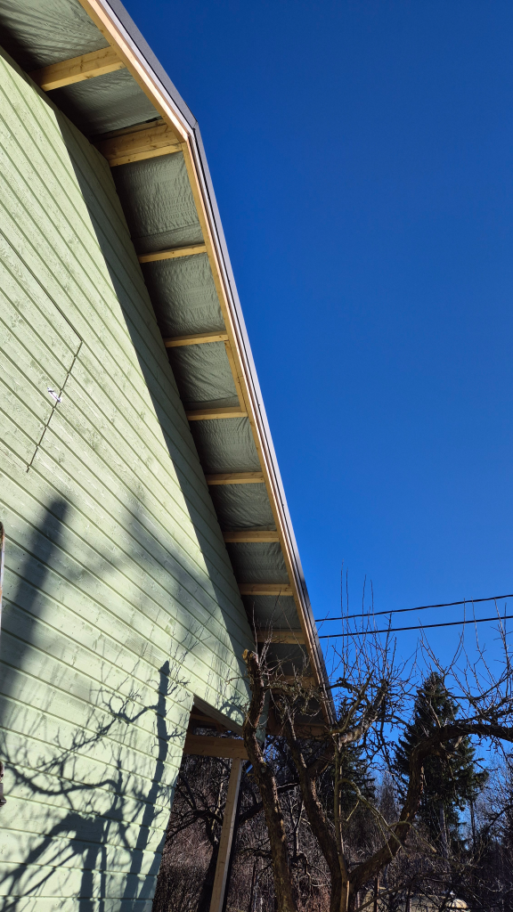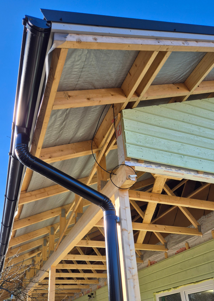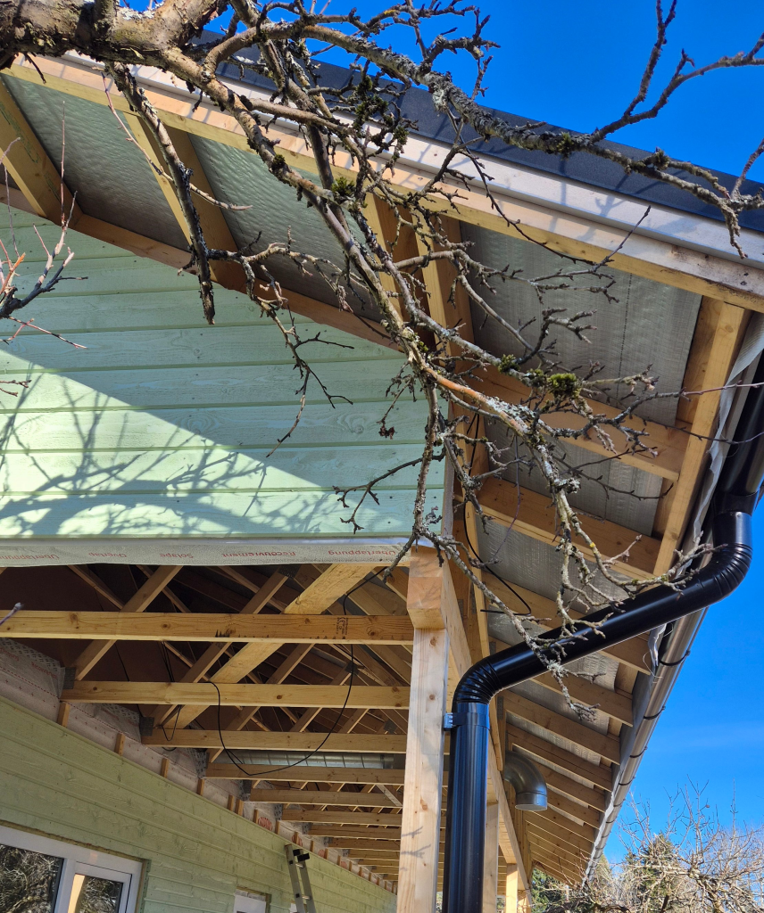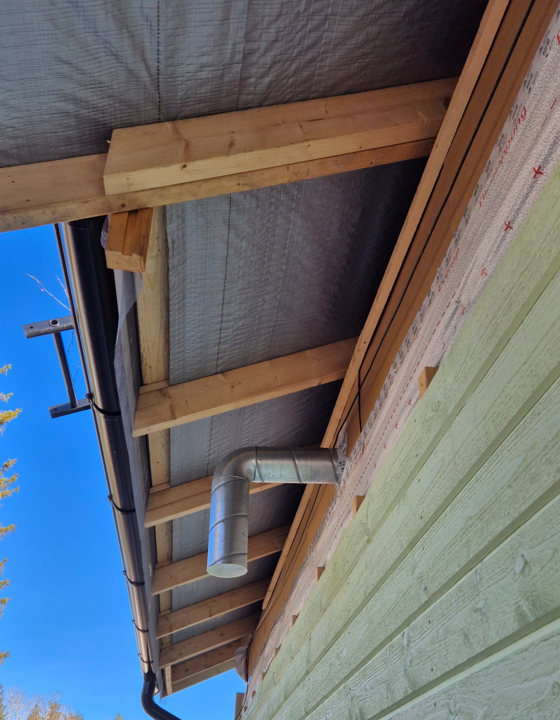 Tuulekasti paigaldus, katusealuse lae paigaldus, puuduvate voodrilaudade paigaldus.