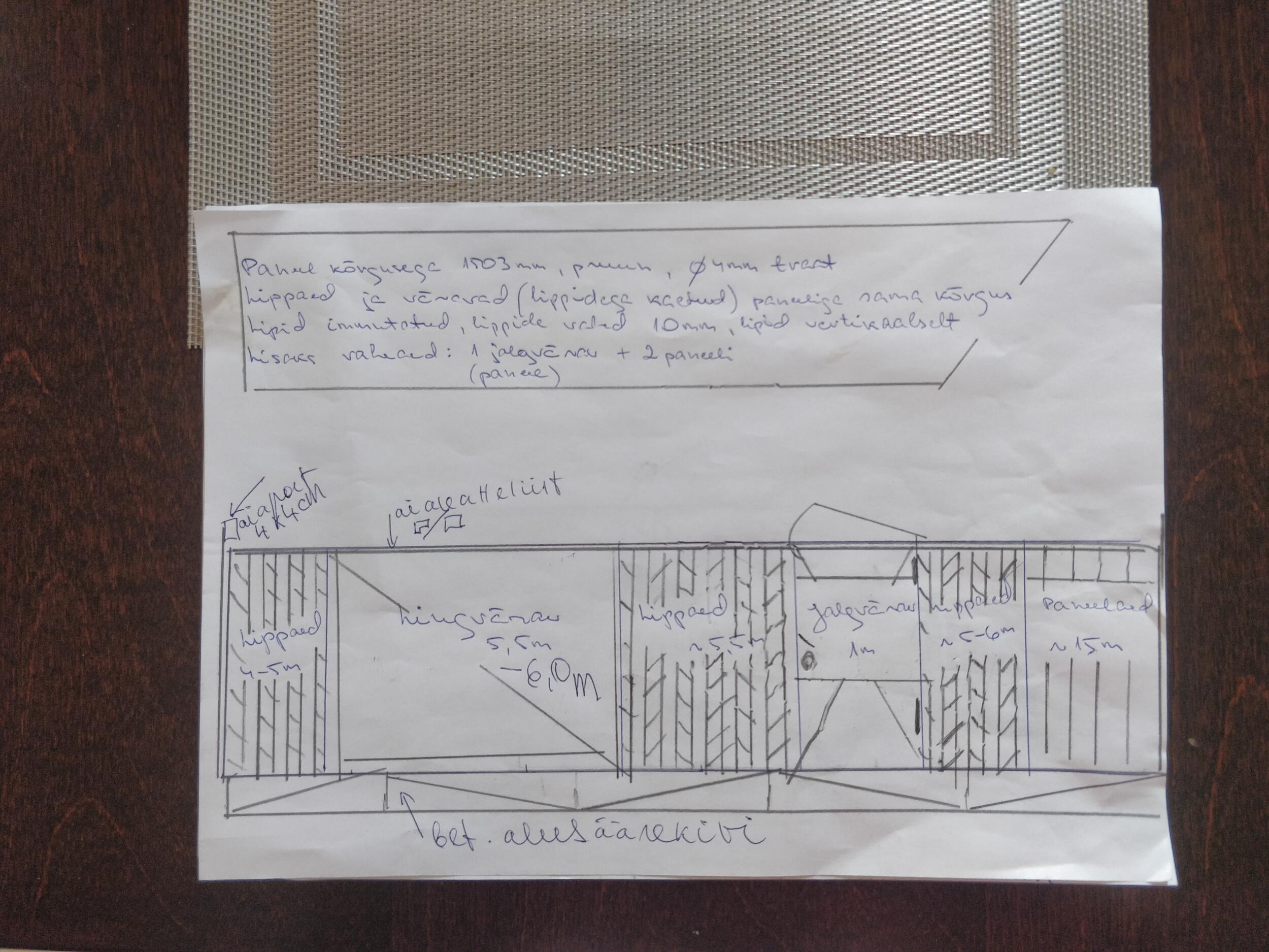42 jm piirdeaed kinnistupiiri esiküljele.2 nurgapost+15 jm paneelaeda;5,5 liugvärava laius+1,2 jalgvärav;17 jm lippaeda (voodrilaud).Pruuni tooni.Alustamine hiljemalt 4.aprillil.4 mm jämedusega paneel.Postide betoonimine.