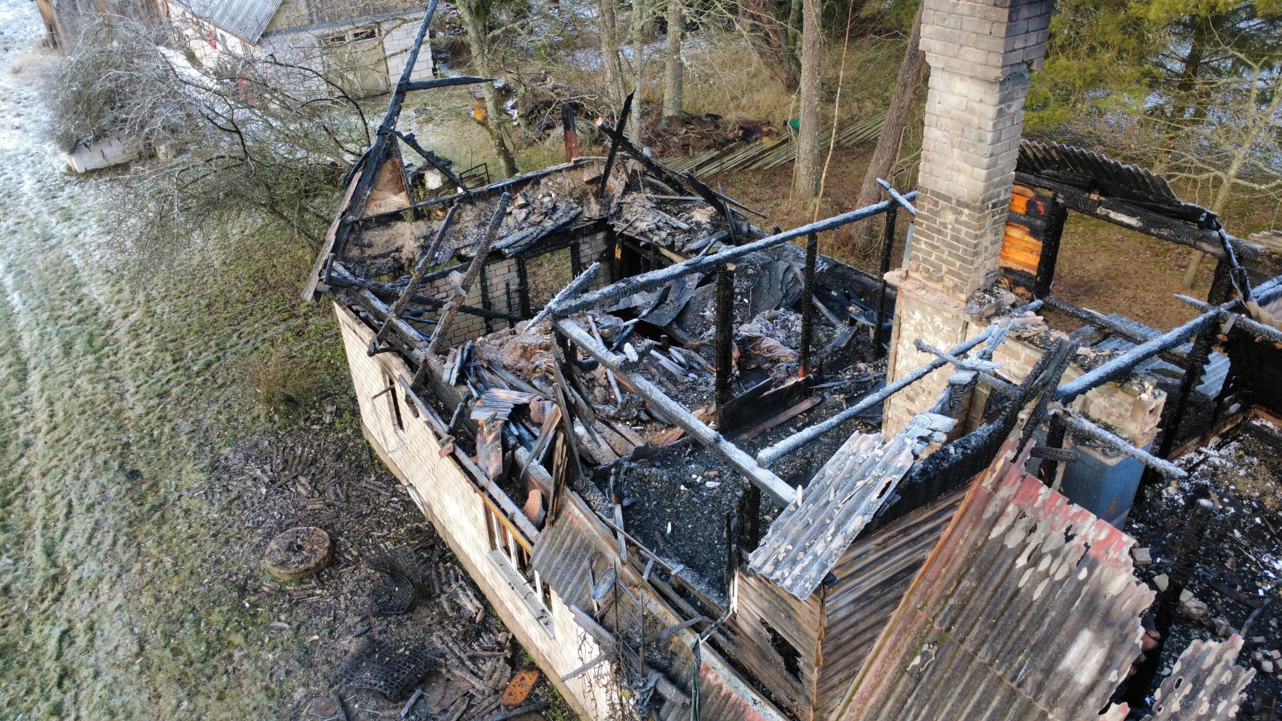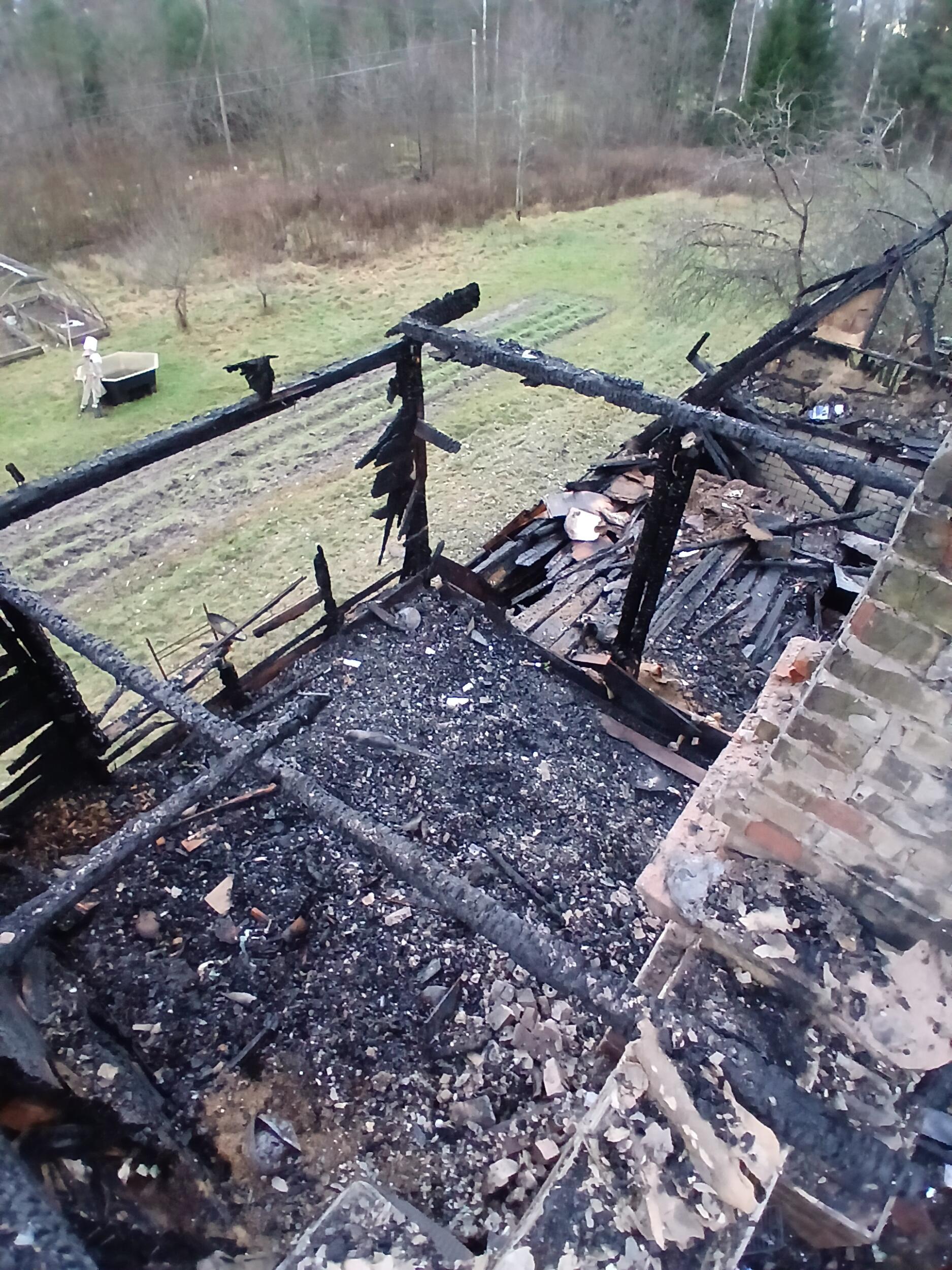 Pindala ortofotolt mõõdetuna 120 m², EHR-is 90 m², seal pole juurdeehitust arvestatud, praeguseks ongi see osa ära põlenud seega saab sellega arvestada. Esimesel korrusel 6 ruumi ja tuulekoda. Keldrit pole, vaid u ruutmeetri suurune keldri funktsiooni täitnud süvend.