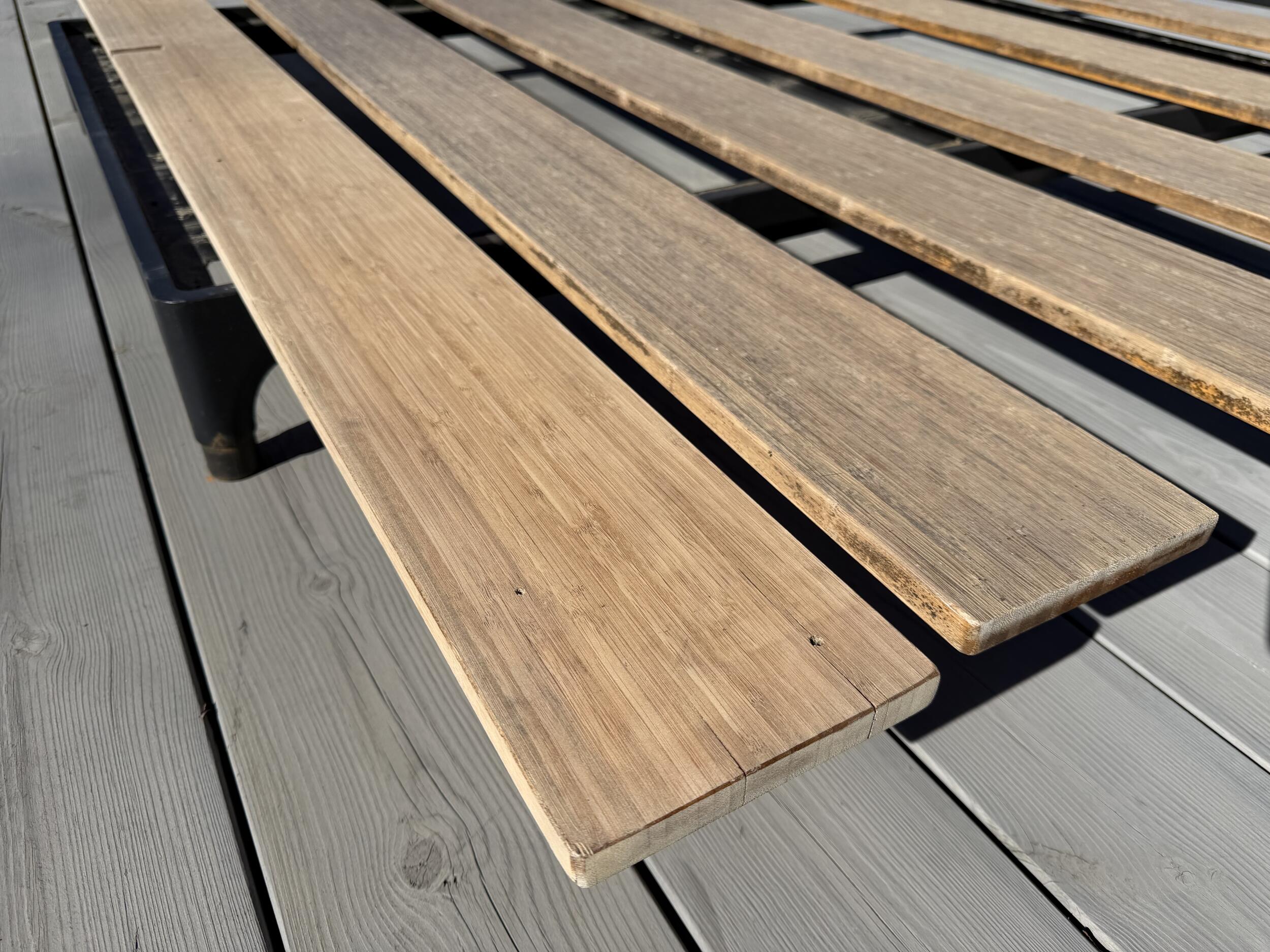 Sooviks hinnapakkumist õuelaua lauaplaatide hooldusele. 5tk 140x1900. Materjal bambus. Pestud leeliselise süvapesu vahendiga ja kuivad.
