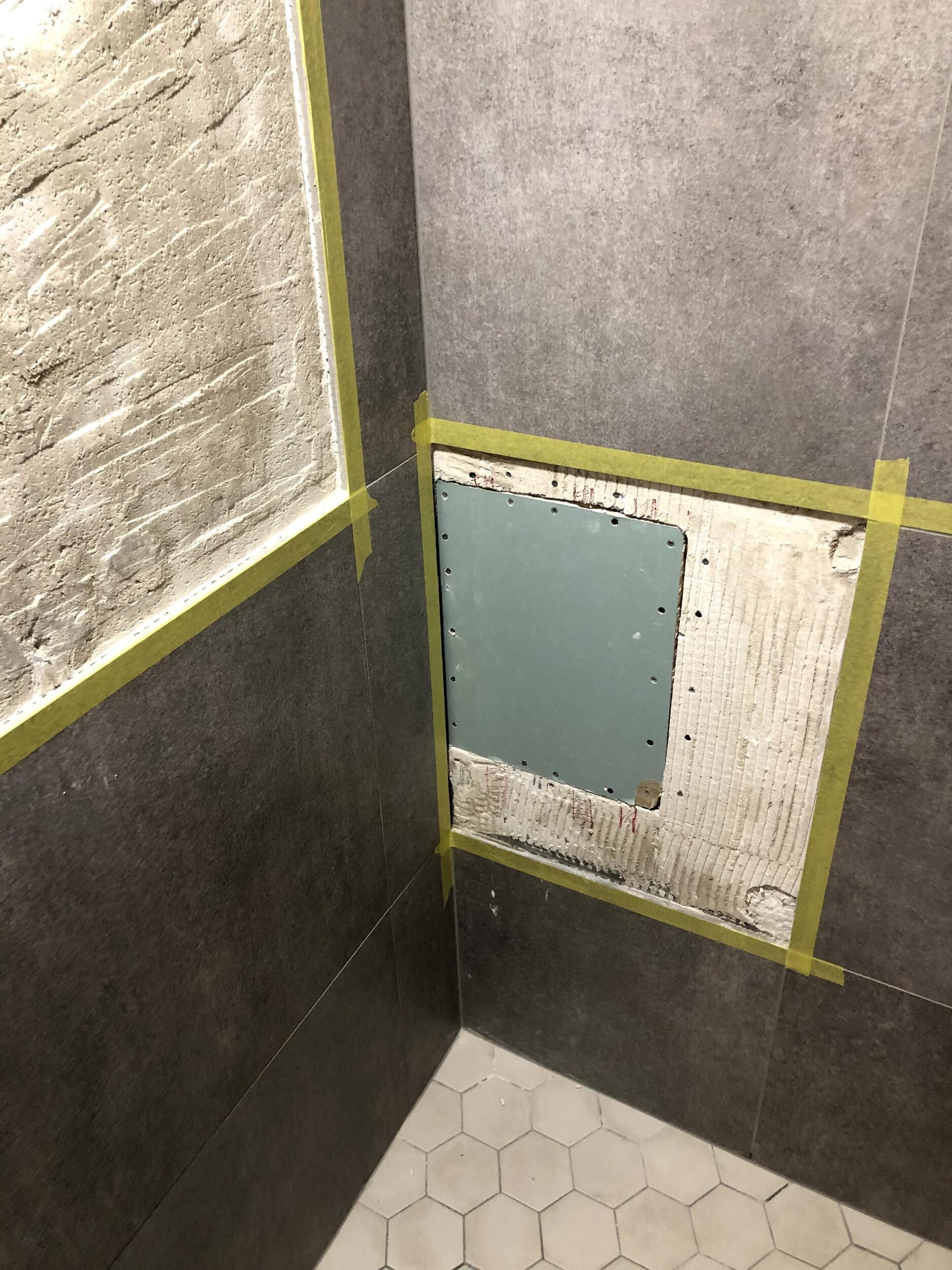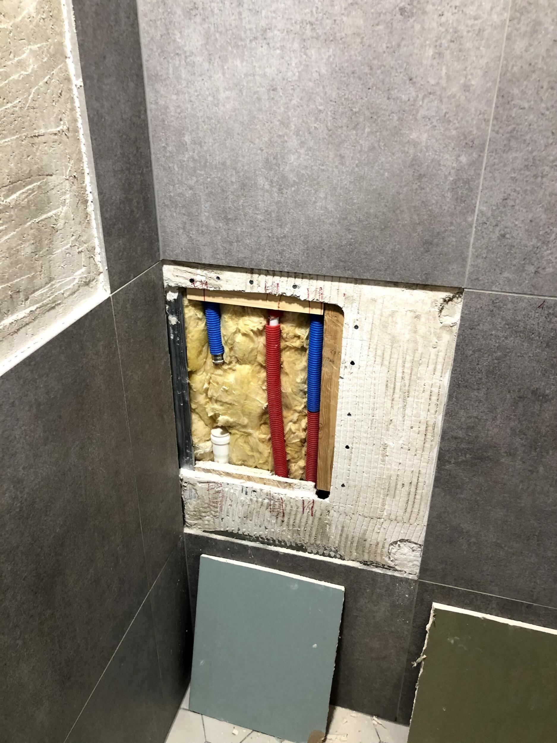 Ideaalis võiks saada veesõlmele ligi WC poolt (seina taga) kuna seal on tavaline kipssein. Ehk on variant vannitoaplaat säilitada ? Kui mitte, siis on vajalik ka uus plaat paigaldada. Samu plaate enam ei müüda nii et sobiliku plaadi saab hiljem valida. Tõenäoliselt jääb töö hiljem kapi taha peitu.