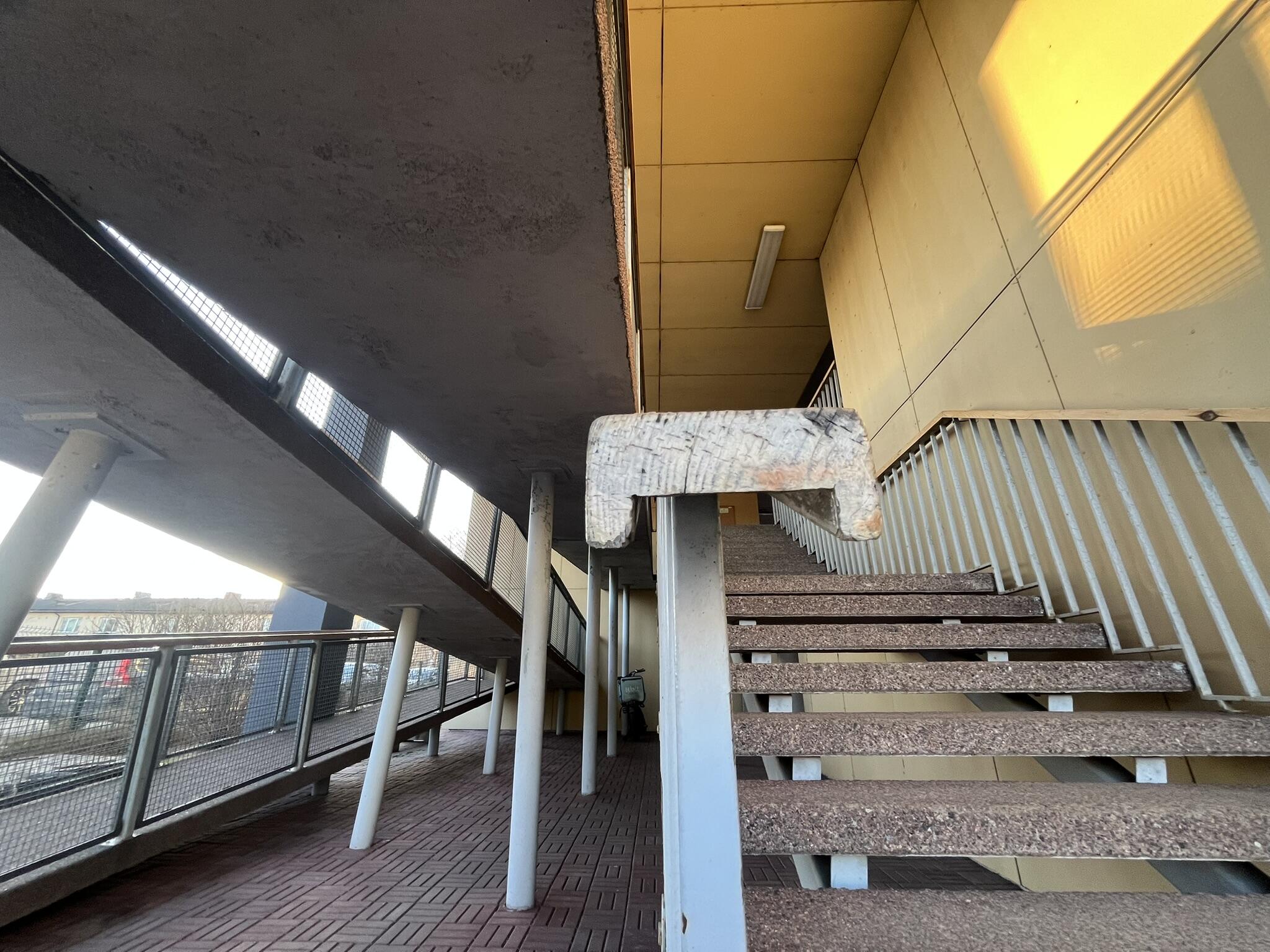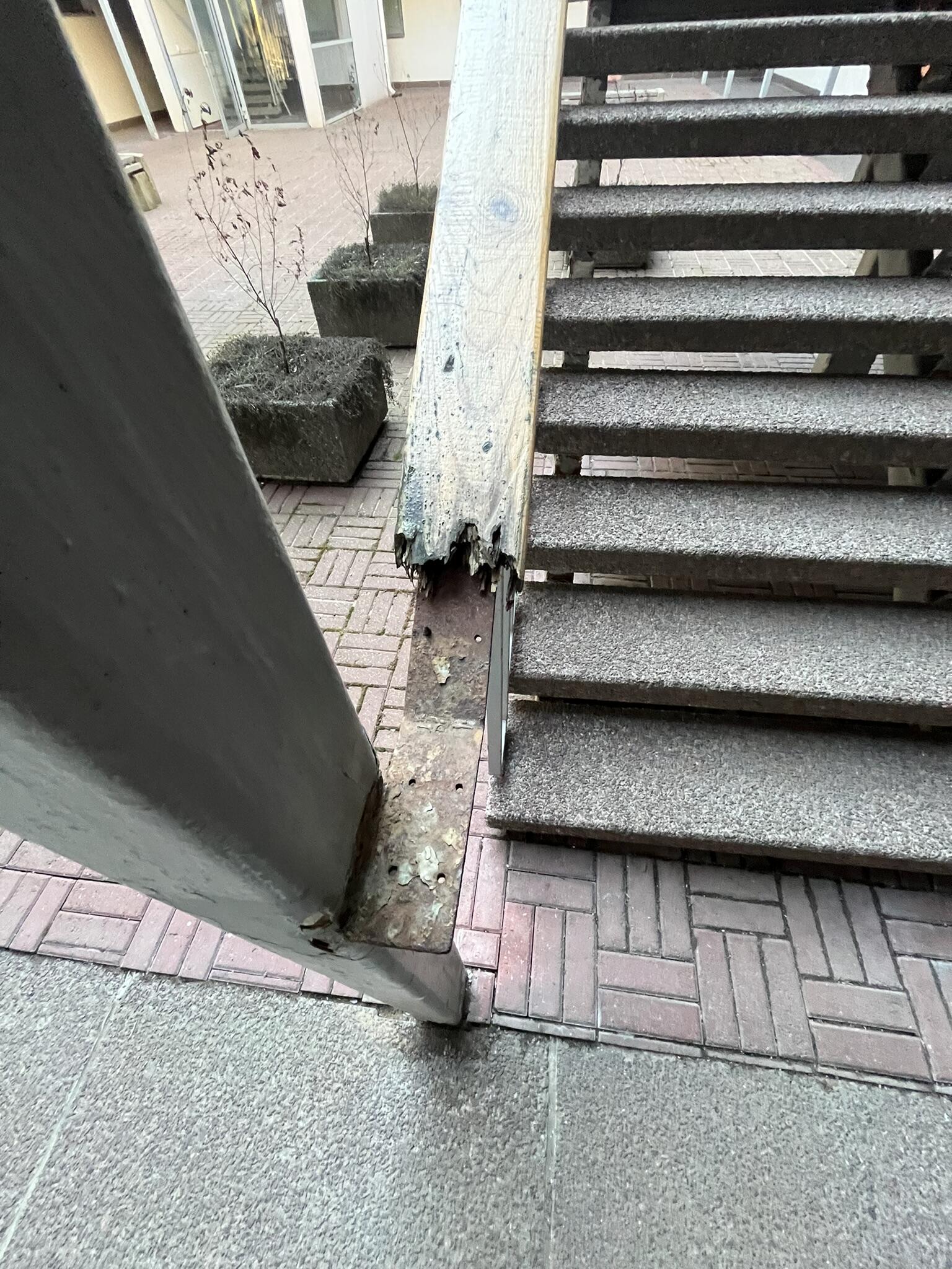 Ol.ol olukord: 2003 aastal valminud kortermaja aatriumi puidust trepikäsipuud on amortiseerunud ja vajavad vahetamist.