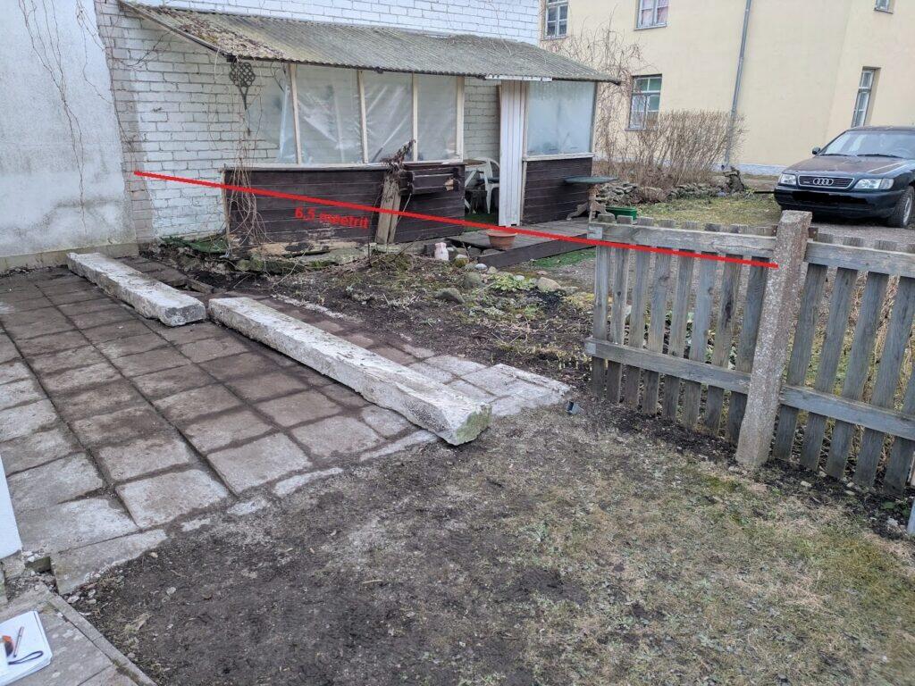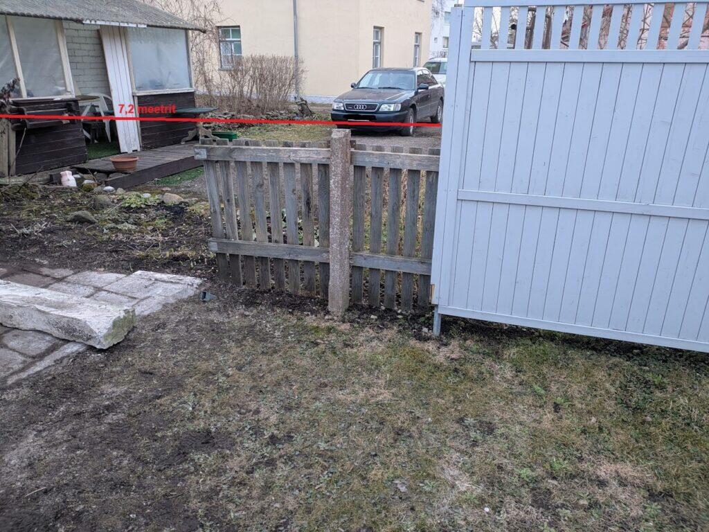 2) Pikendada olemasolevat kergaeda 7.2 m pikkuselt kuni kõrvalkinnistu müürini. Palmako Elke kergaia paneelid (1.8 m x 1.8 m, 4 tk) on olemas. Vaja on lisaks 4 posti. Paneelid on krunditud, enne paigaldamist värvida VDV värviga tooni V162A