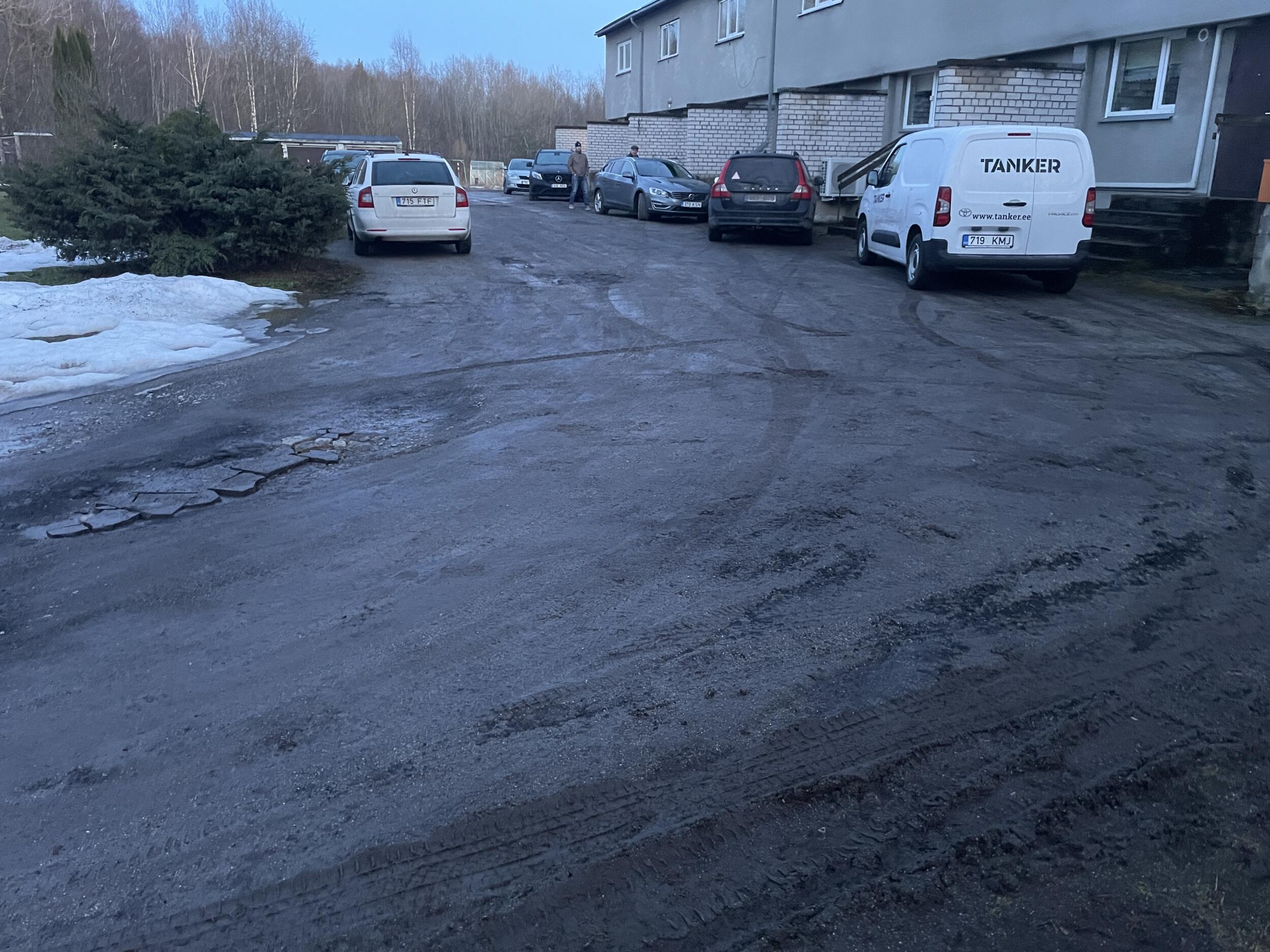 Kortermaja juurde viiva tee ja maja ees oleva autode parkimiskohtade aluse maa (kokku maksimaalselt 1200 m²) pindamiseks. Teekatte materjali osas palume pakkuda erinevaid variante.