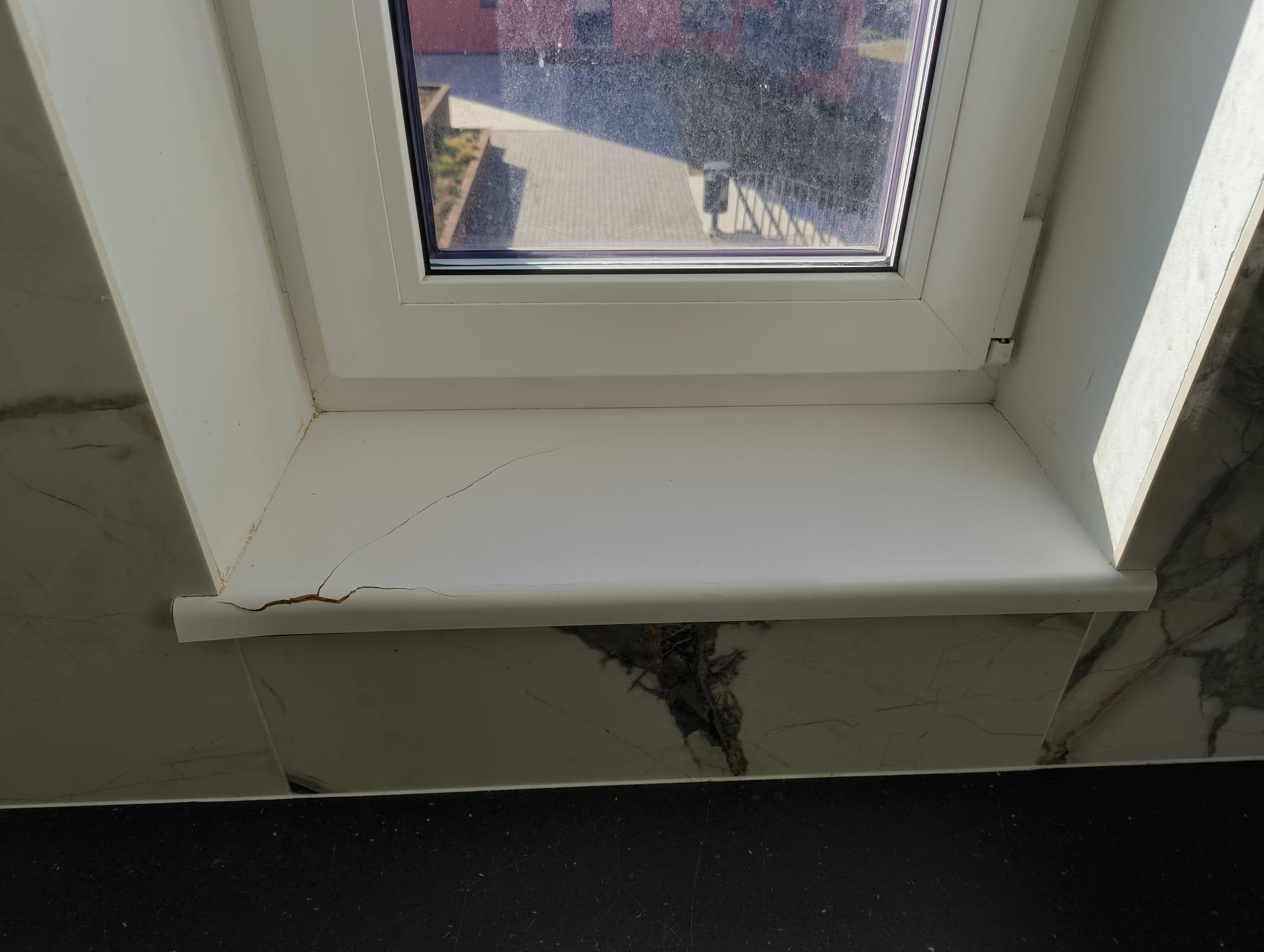 Praegune aknalaud on mõranenud ja vajab väljavahetamist. Mõrad on nähtavad aknalaua esipinnal ning alumine osa on kahjustunud (nähtav pildil). Palun pakkuda uue aknalaua paigaldust koos vanade materjalide eemaldamisega.