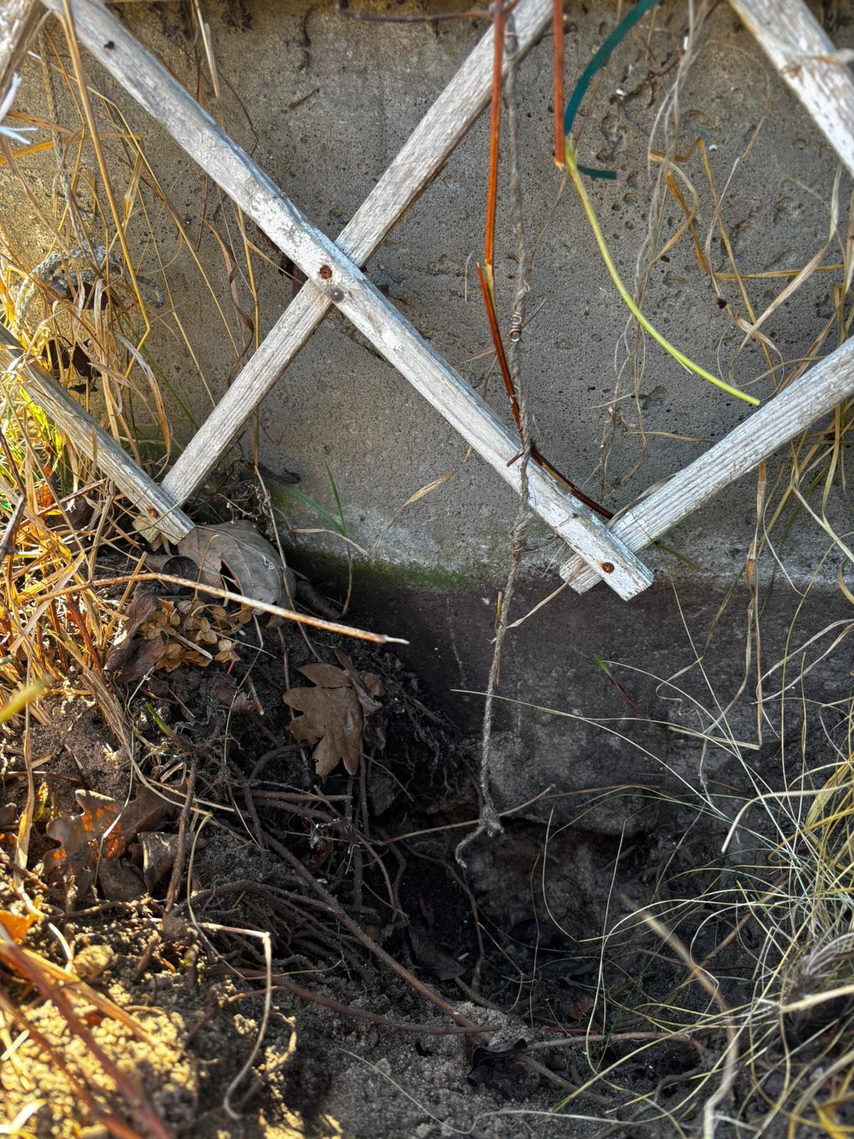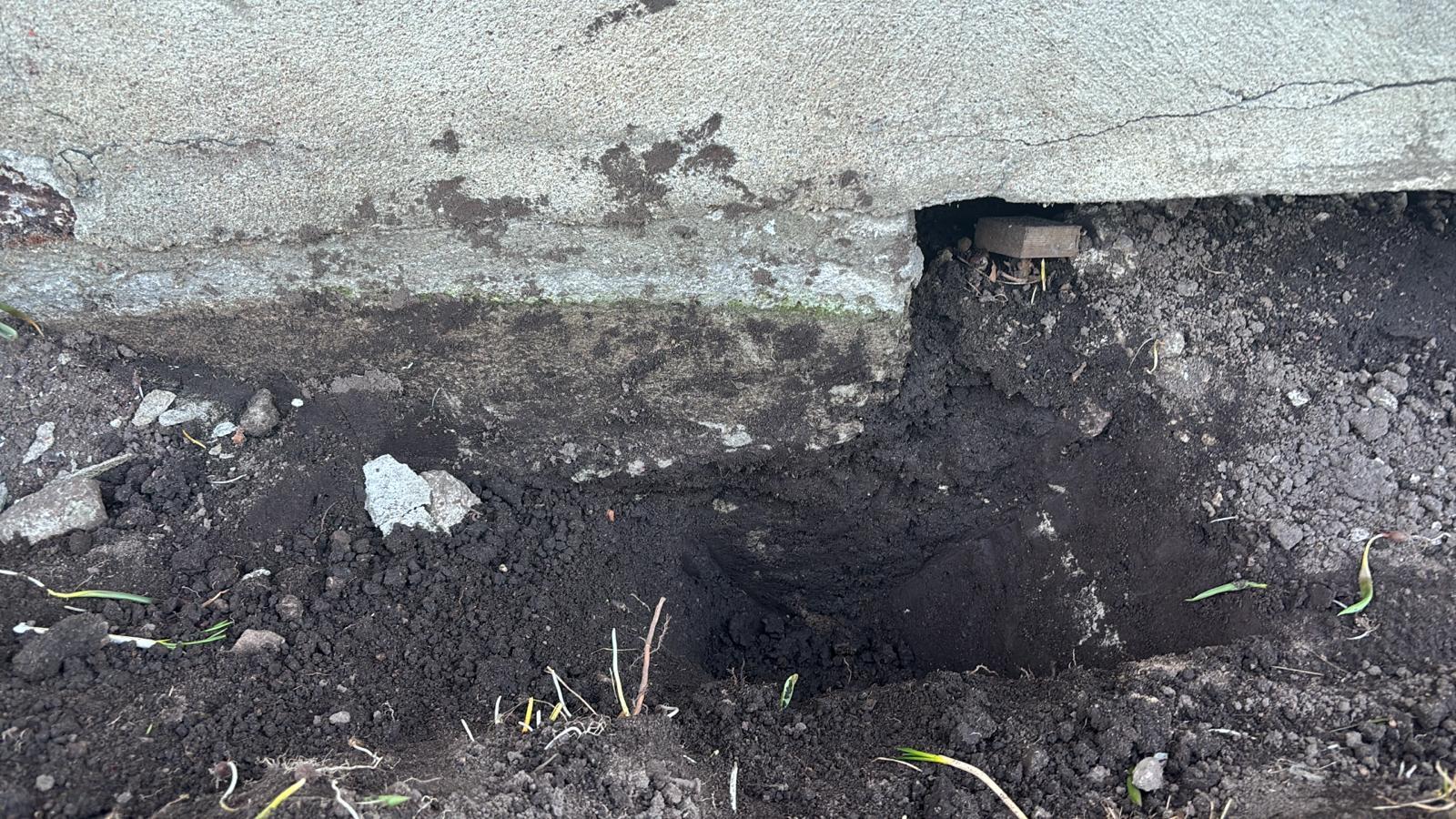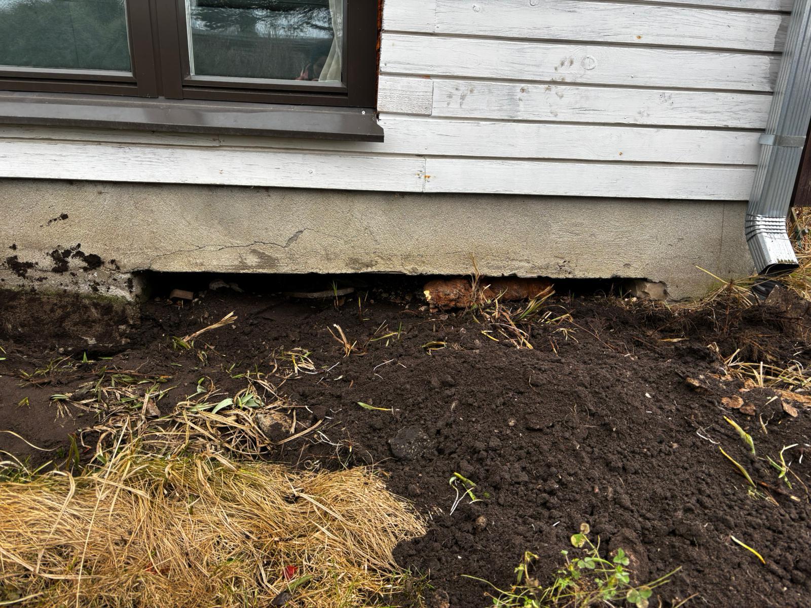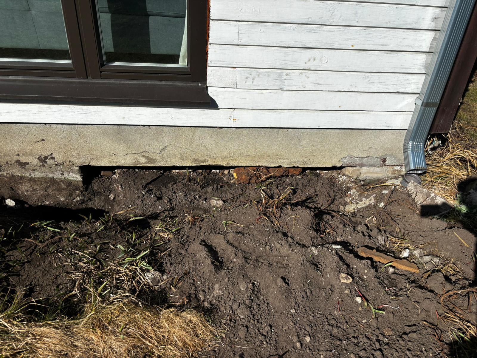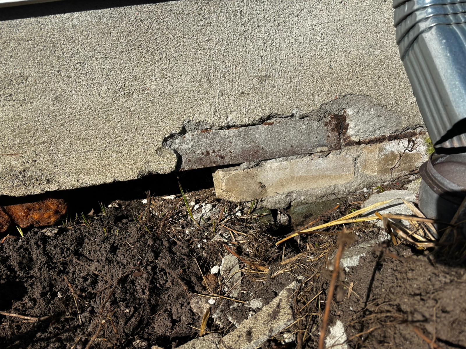 Soovime parandust nurgapealsele vundamendi osale. Otsaseina juures olev vundament tundub, et on hiljem juurde valatud ja on pigem madalam. Maja ees olev vundament on toestatud raudlatiga, mis on nurga lähistelt kokku keevitatud teise lühema tükiga ja asetseb silikaattelliste peal, kuna nurga pealne osa on nõrgem ja ei ole korrektselt valatud, siis ei ole endal võimalik täpsemalt lahti kaevata. Maja ees olev vundament enne pildil olevat augu kohta (see osa, mis jääb vasakule) on sügavam.