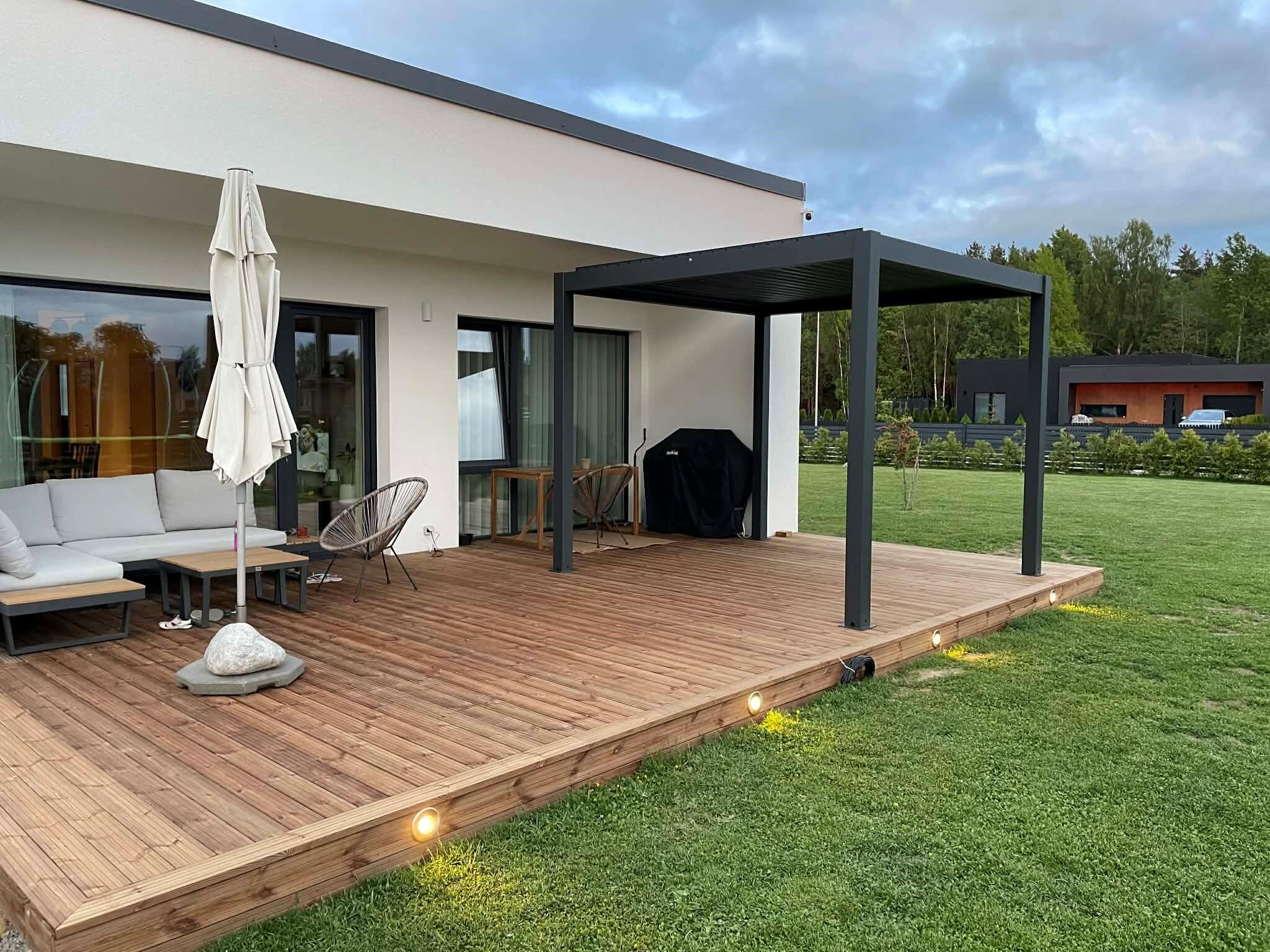 Seina äärest, seina ääreni. Pilt soovitud variandist lisatud. Pilt nr 1 olemasolev terass, pilt 2 soovitud lahendus. Lisaks soov saada terassi otstesse valgustus, ehk on vaja teha ka elektri ühendused.