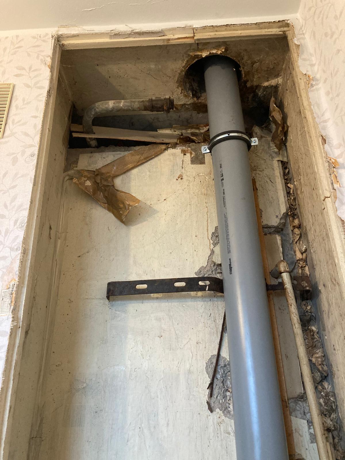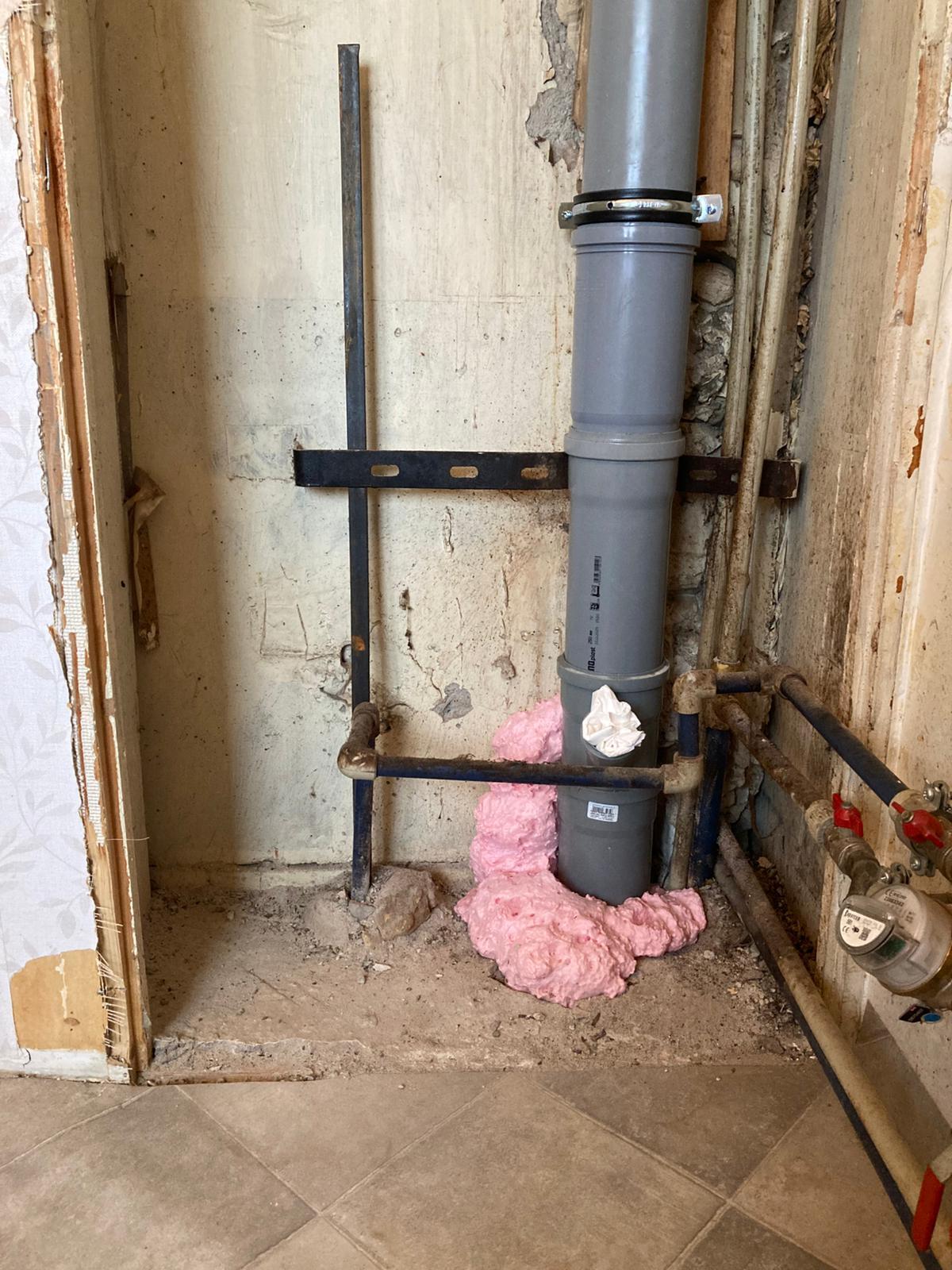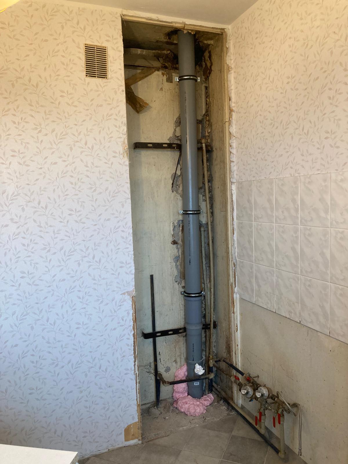Peale kanalisatsioonitoru vahetamist on vaja kenasti sulgeda laest põrandani avatud seinasisene ava, kus asub püstaku kanalisatsioonitoru. Ava laius on ~70 cm. Alla nurka tuleb jätta umbes 40x60 cm avatud ligipääs veetorude jaoks (ilma luugita).