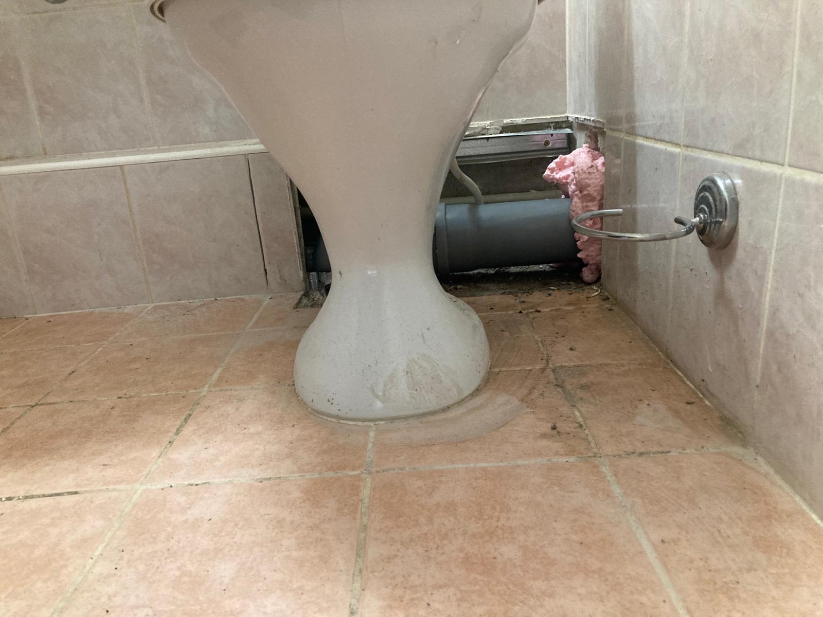 WC põrandal nurgas (WC-poti taga) on vaja sulgeda/katta avatud kanalisatsioonitoru osa ja viimistleda see plaatidega (umbes 6 plaati).