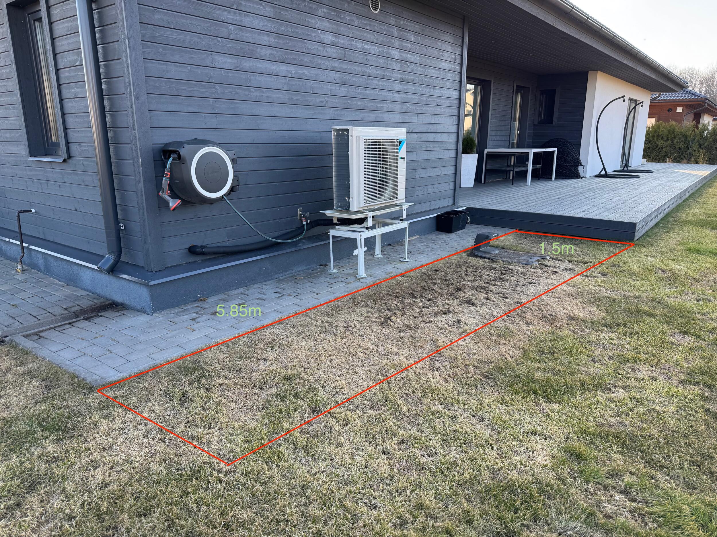 Soovin laiendada kiviparketti maja taga terassi juures. Laiendatava ala pikkus on umbes 5.85m ja laius 1.5m seega kokku peaaegu 9m2. Tööks vajaminev materjal ja pinnase äravedu töö tegija poolt.