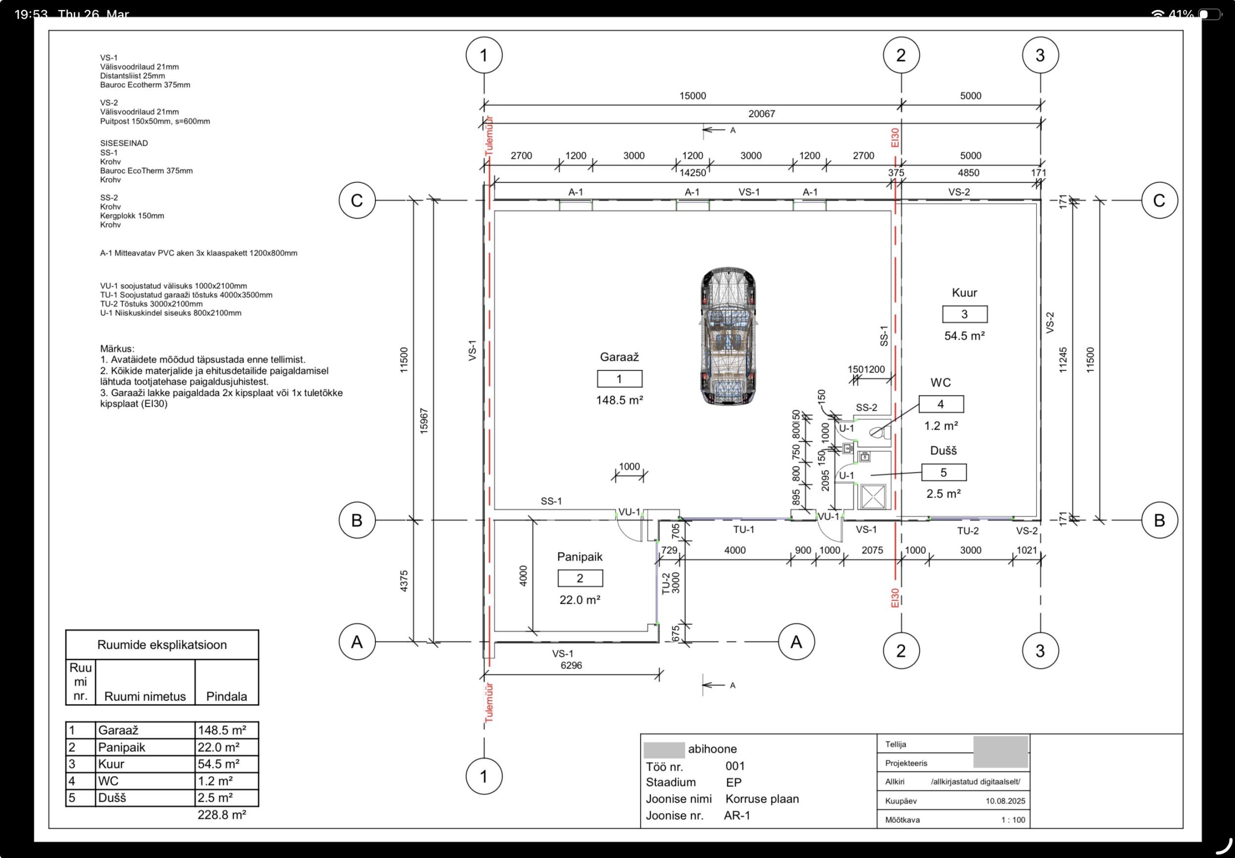 | Ehitusmaterjalid: | Töö tegija poolt |