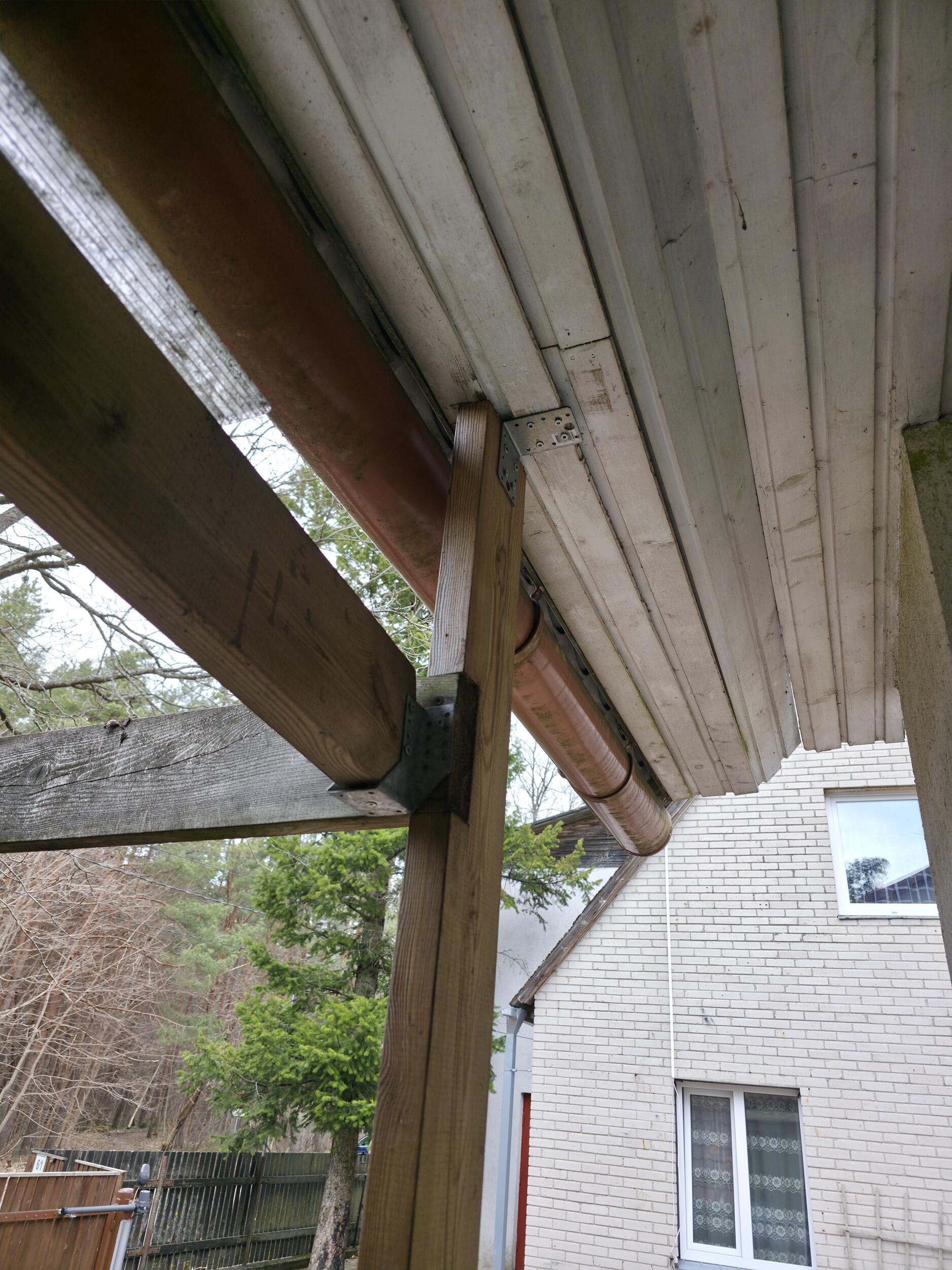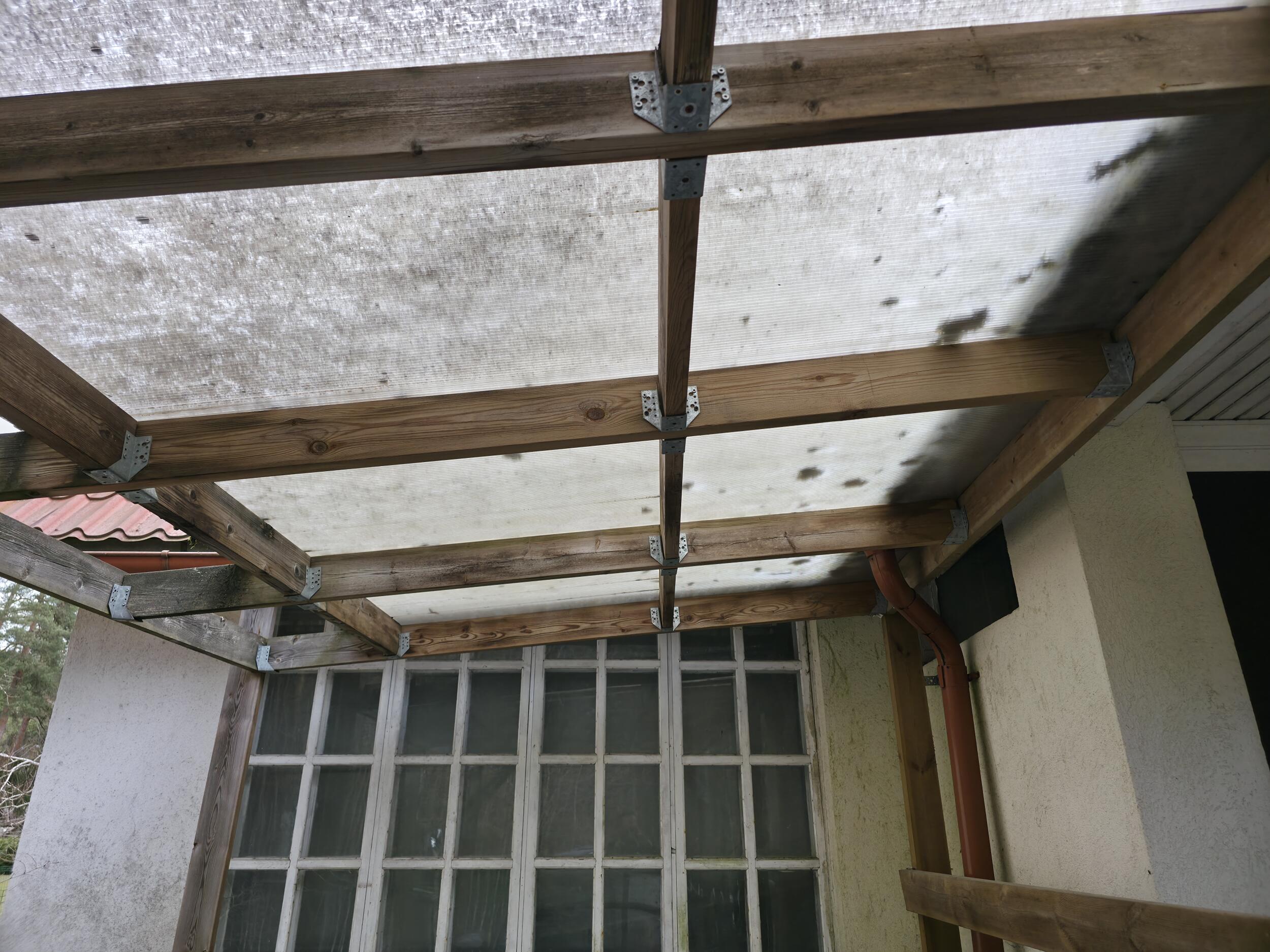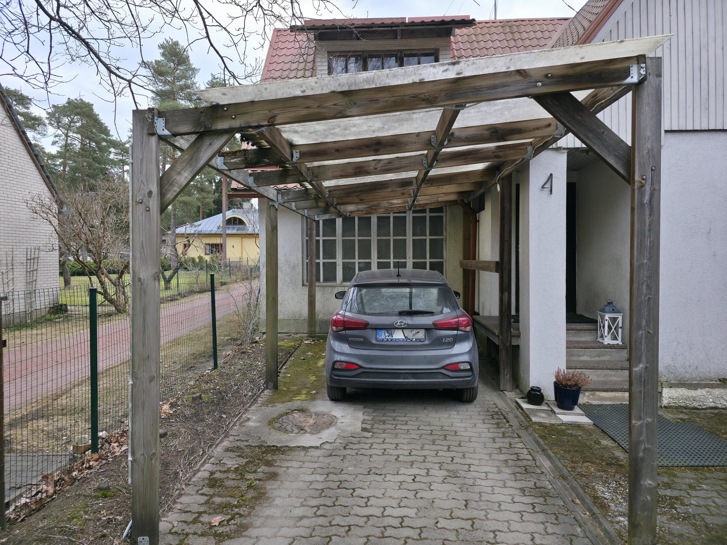 • Auto varjualuse mõõdud: 306 x 630 cm, kõrgus maapinnast 290 cm. Varjualuse saab kolmest punktist kinnitada maja tuulekasti külge. Olemasolev konstruktioon seisab vabalt kivisillutise peal.