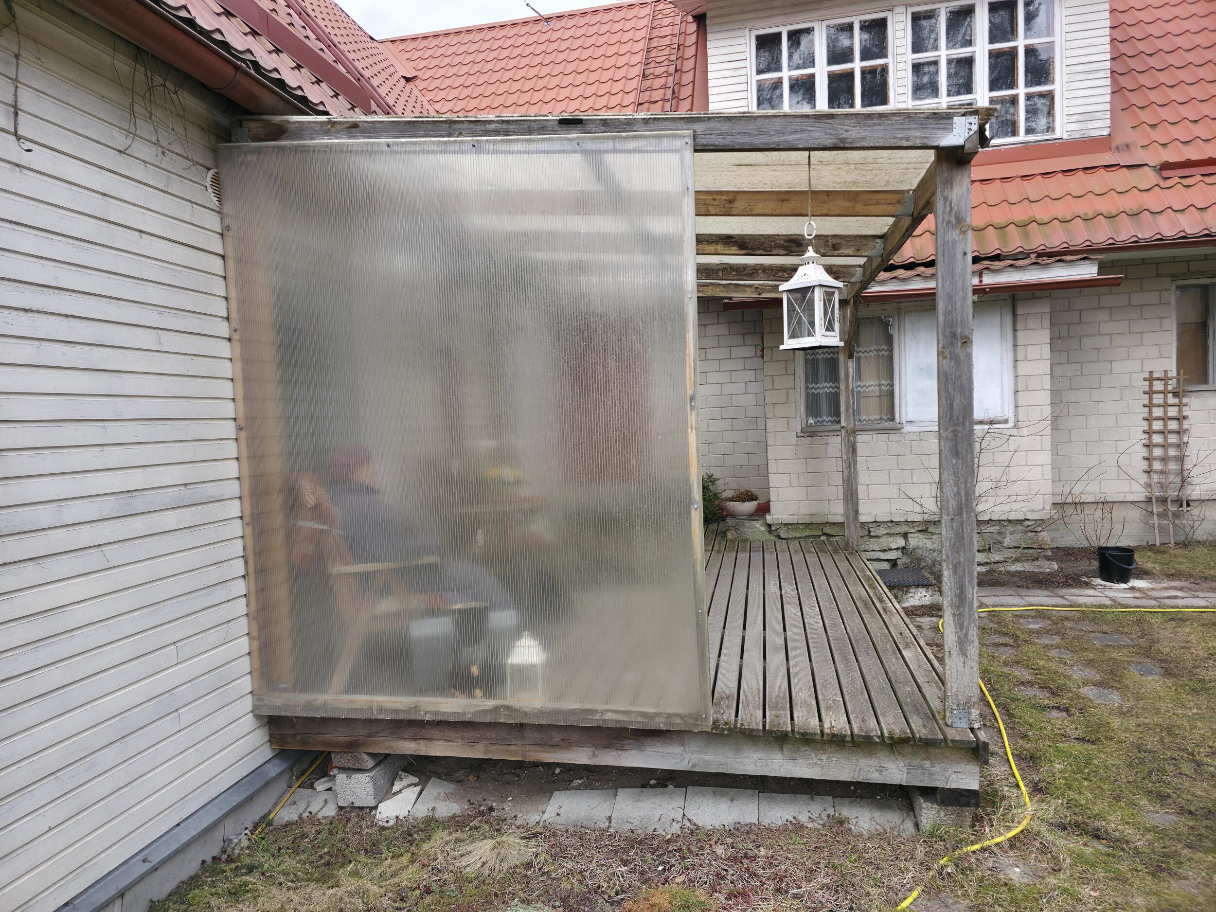 • Terrassi katuse mõõdud: 300 x 395 cm, kõrgus terrassi pinnast 225–250 cm.