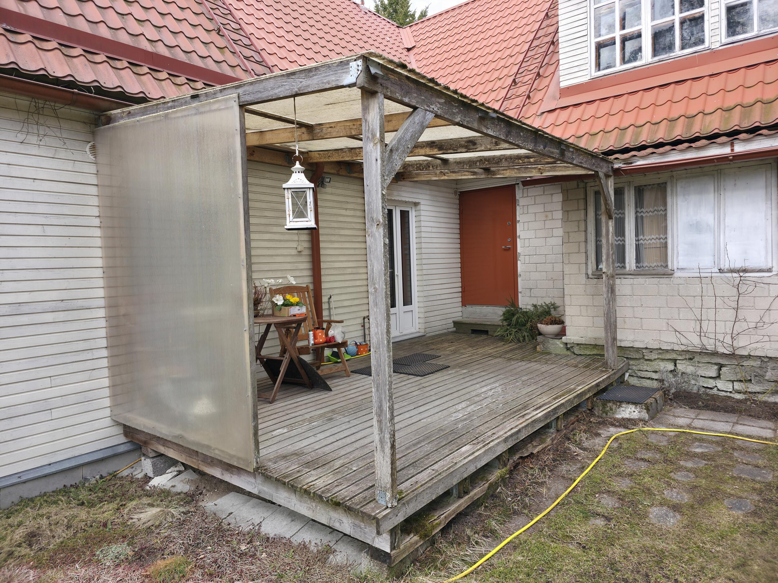 Planeeritav töö hõlmab uue terrassi ja auto varjualuse rajamist olemasolevate konstruktsioonidega samades mõõtmetes: