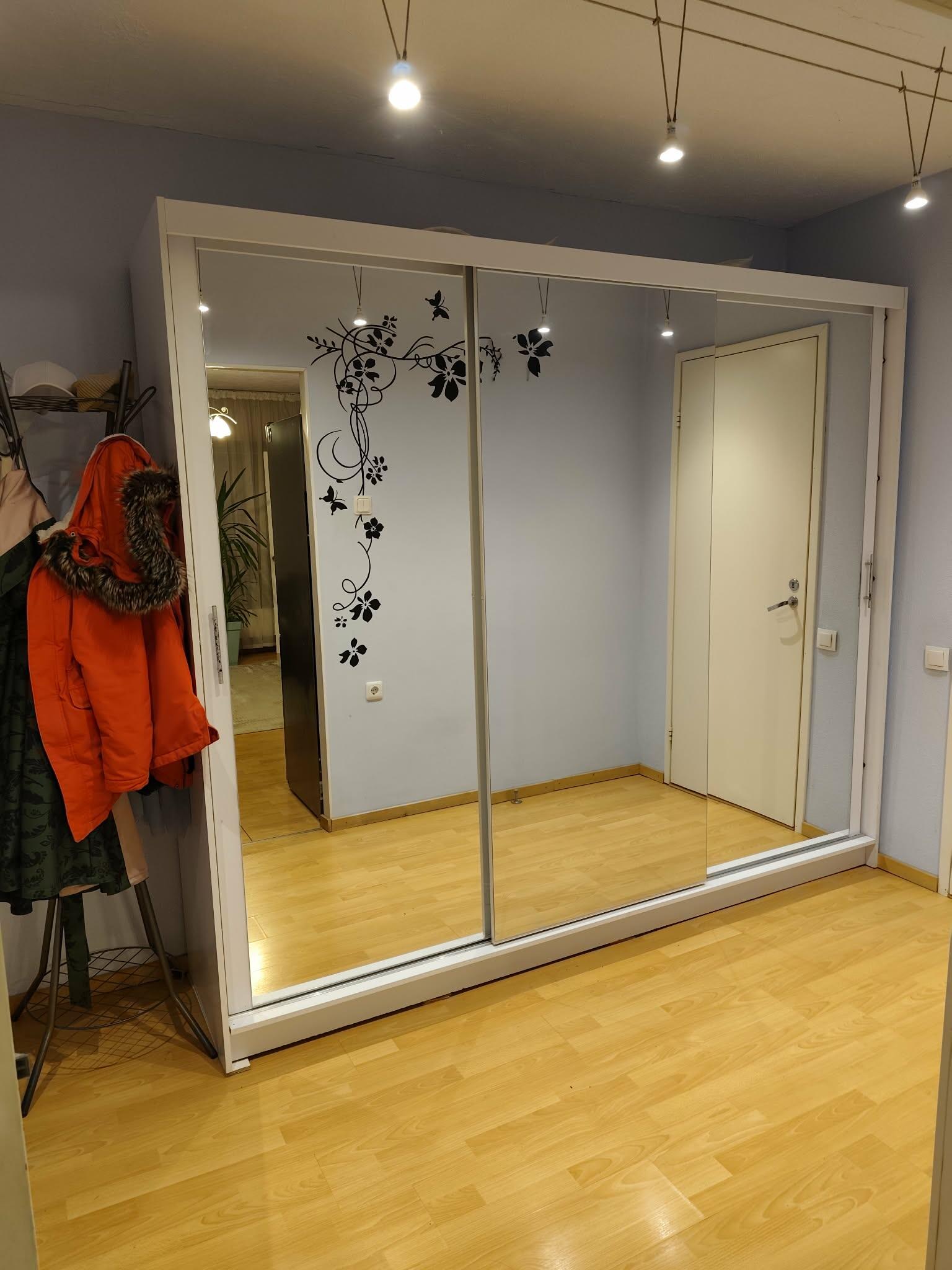 Vaja on paigaldada liuguksed riidekapile. Varem on need ees olnud aga vahepeal oli parketipaigaldus ja uksed tuli eest võtta, et kappi liigutada. See oli varem ka pandud nii, et natuke tuli ühte otsa tõsta, ehk siis kõrgendused alla panna. Püüdsime seda teha aga ei saanud hakkama. Ilmselt tuleb keskele ka panna kõrgendus, sest uksed jäid nagu viltu ja keskmine jooksis oma kohalt ära. Kapp on raske ja seda tuleb ilmselt tõsta, et sättida loodi.