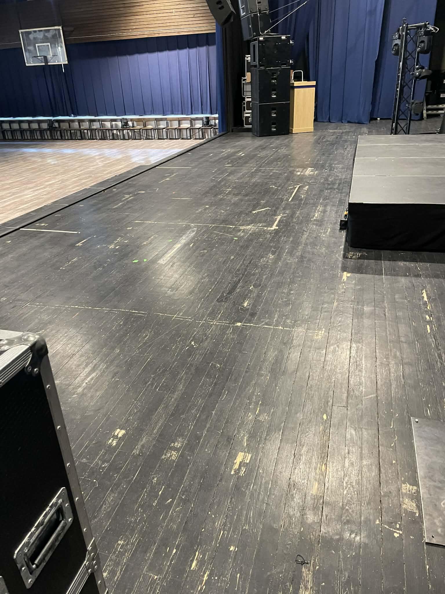 Rahvamaja lava (kokku 160m2) on halvas seisus - kui seal kunagi remont tehti, pandi ilmselt vale värv, mis on nüüdseks kulunud ja kui sinna teip maha panna ja siis üles võtta, tõmbab ta kaasa ka puitpõrandat.