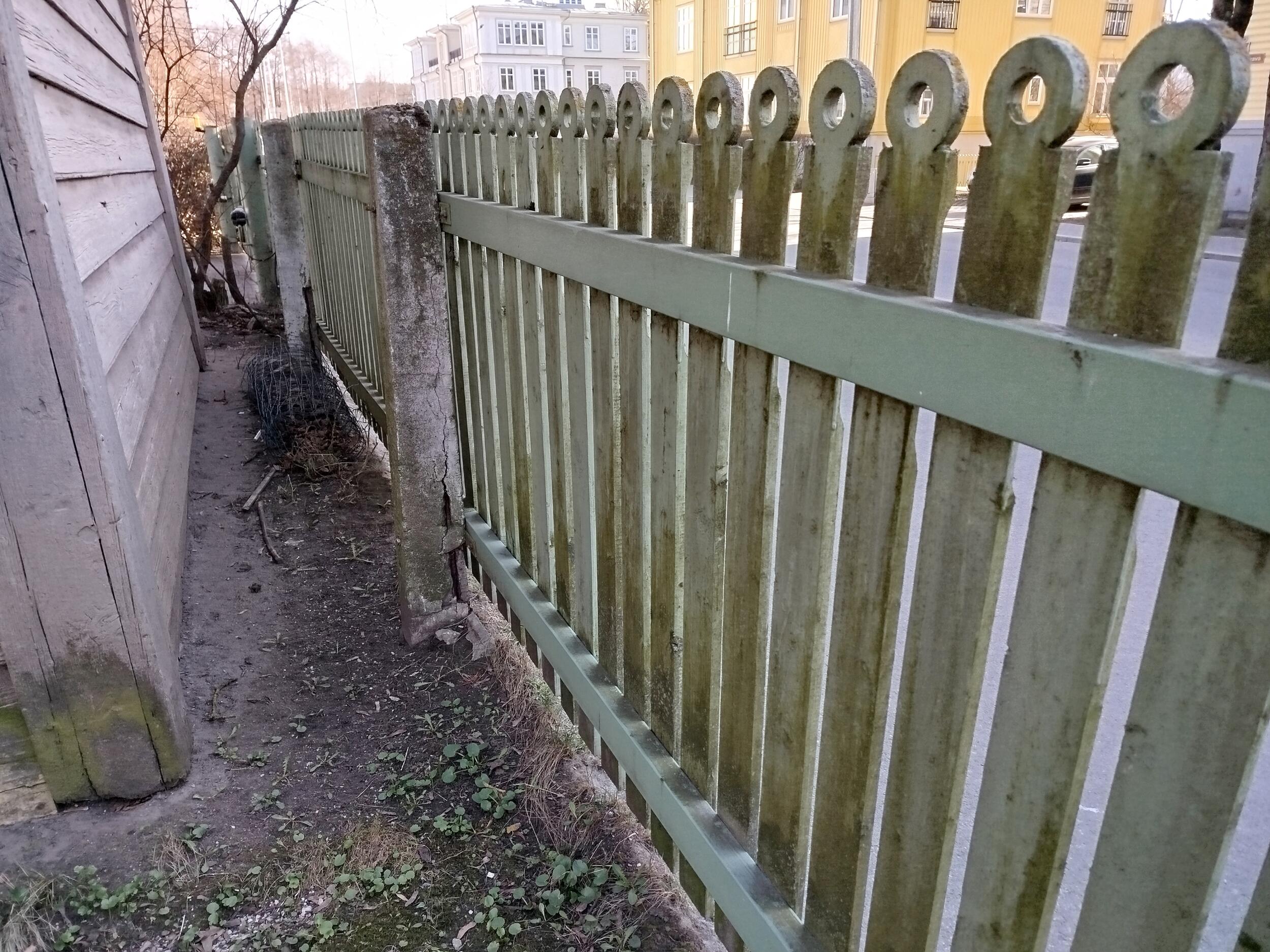 Tegemist on 175 m pikkuse puidust värvitud piirdeaiaga. Lati maksimaalne pikkus on 1,4 m. Prusside kogupikkus 2x175 m = 350 m. Väljavahetamist või parandamist vajavad osaliselt ka tugipostid.
