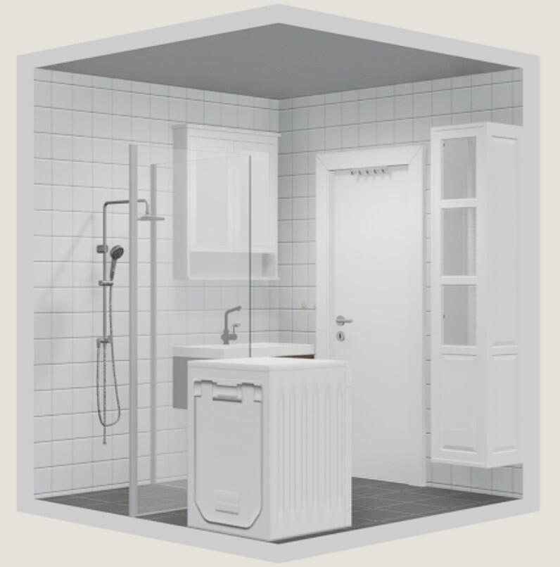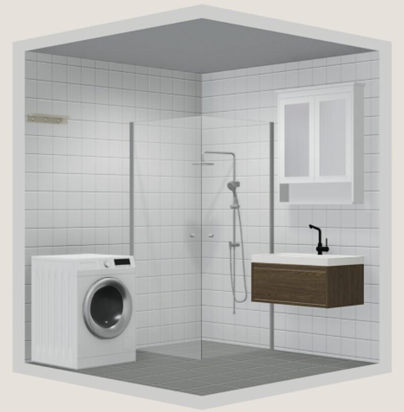 5. Sanitaartehnilised tööd: seinale asetatava kraanikausi - ja aluse, ja segistite paigaldus, dušinurka segisti paigaldus, dušinurk kahe klaasseinaga paigaldus, vee- ja kanalisatsioonitorude ühendamine sh pesumasina veetorude ja äravoolu toomine seina.