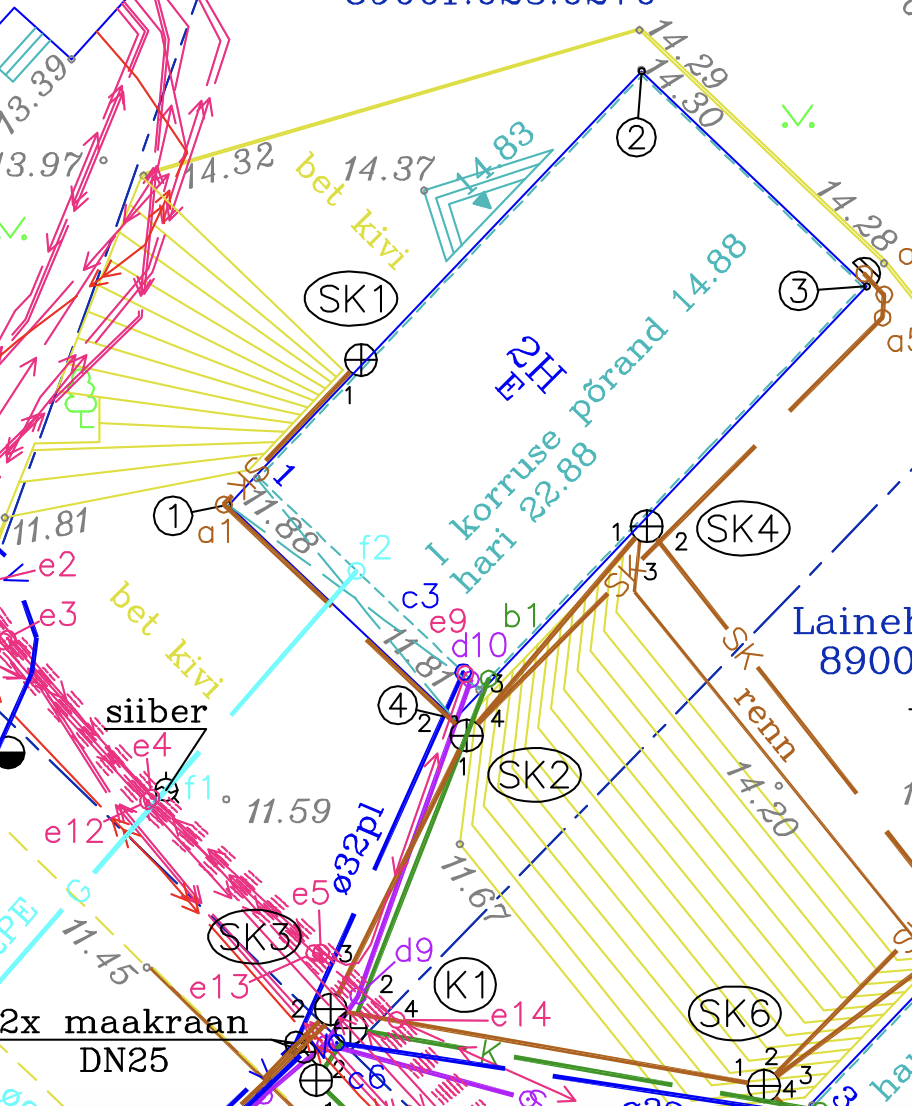 * Maaküttekontuur asub -2.4m ning 2m kaugusel vundamendist