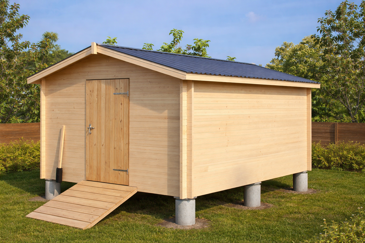 Puidust nii karkass kui ka põranda/seinad. Ühe uksega.
