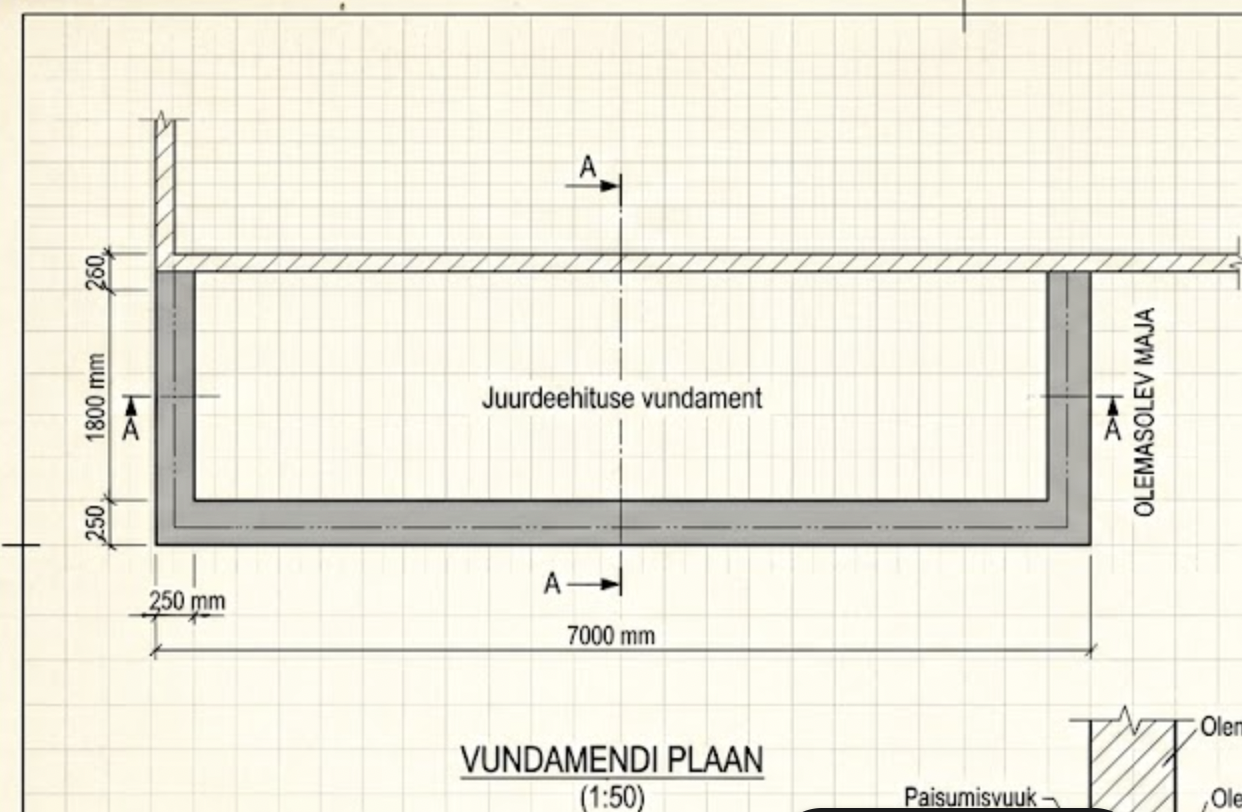 Maja juurdeehituse plaat-vundament, hakkab jooksma piki maja külge, mõõdud: 7x1,8m=12,6 ruutu