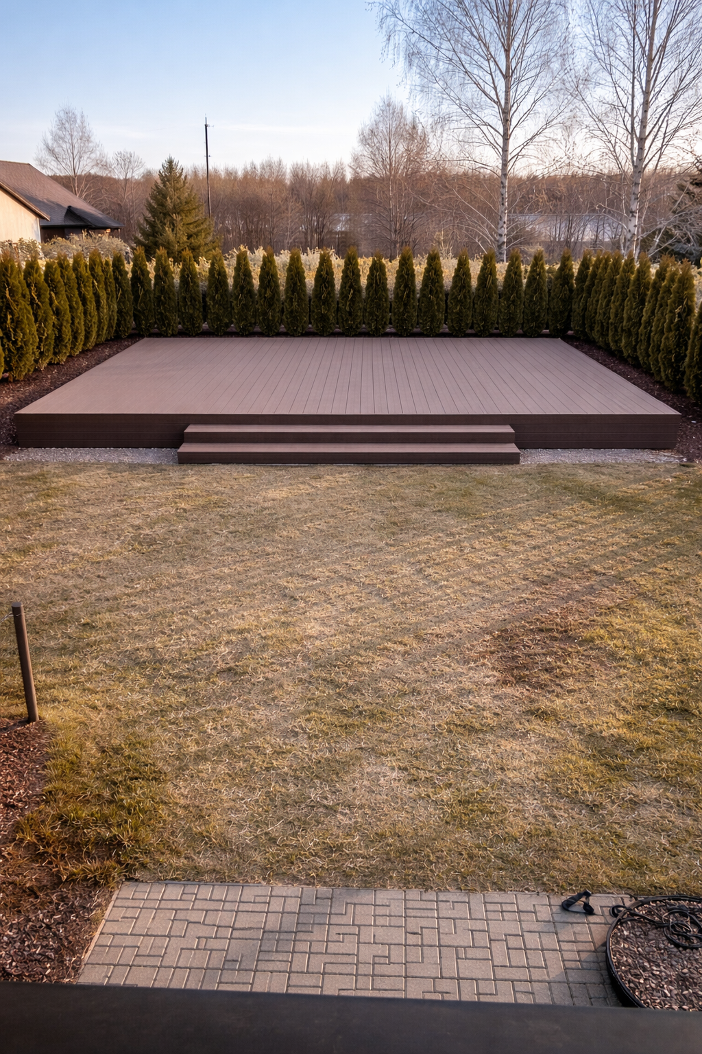 Maapind on veidi kalde all. Seepärast ka trepivajadus ettepoole. Hinnapakkumine võiks olla nii puidu materjalile kui ka komposiitmaterjalile.