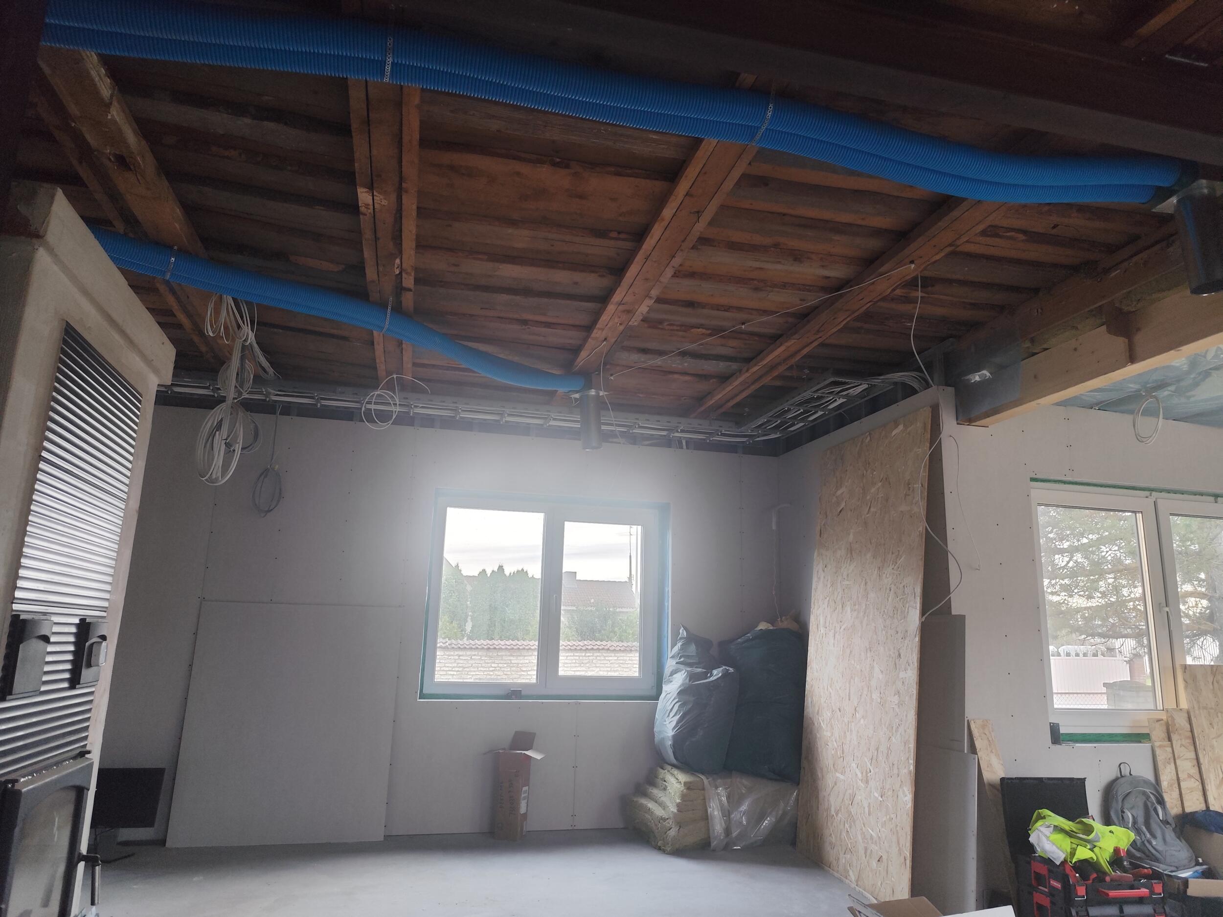 Betoneeritavat põrandapinda oli ca 90 m2, seina jooksvaid meetreid ca 60. Kahekordne kips. Materjal tellija poolt. Maja esimese korruse lagi.