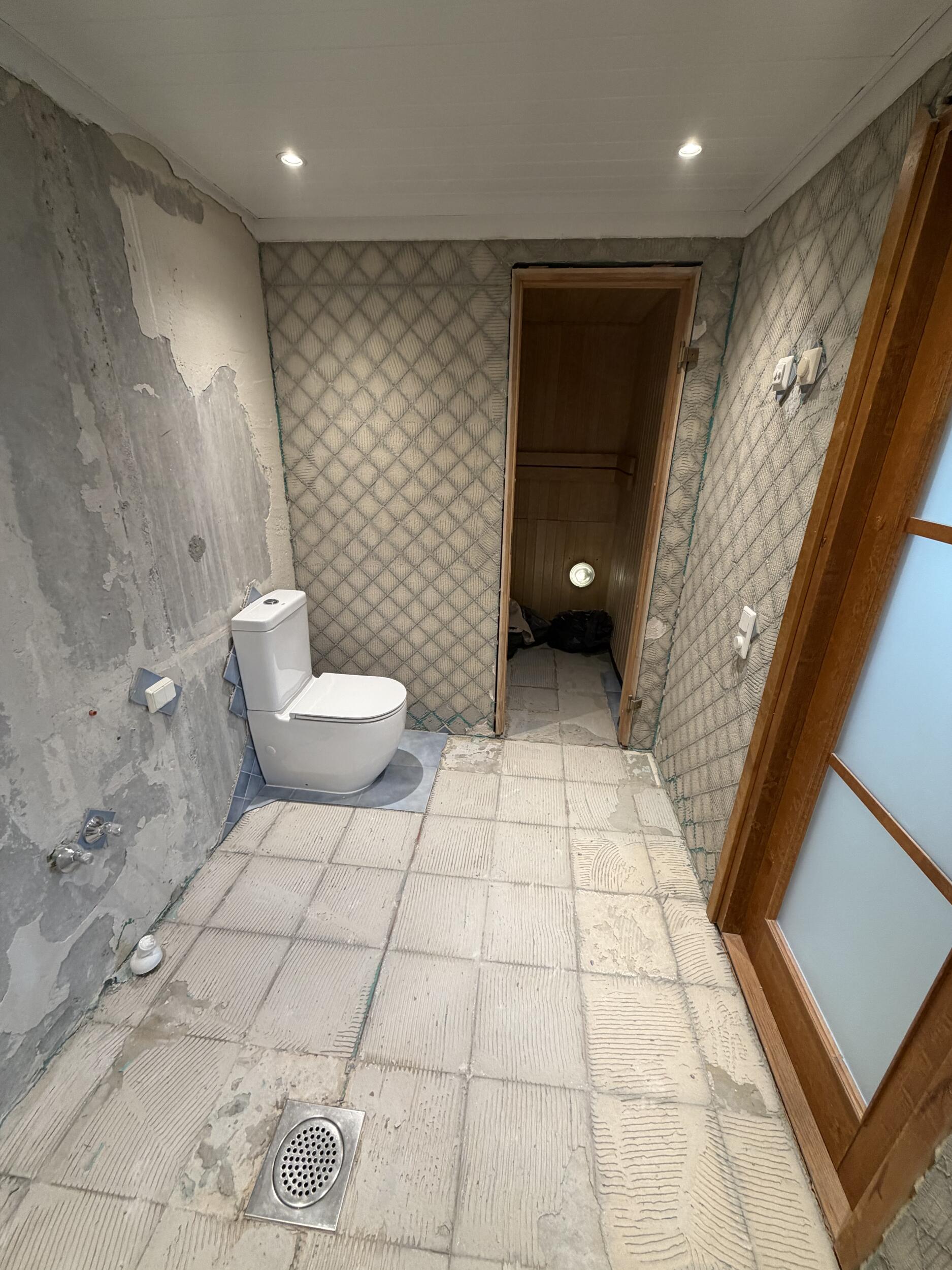 3. Seinte ja põrandate ühtlustamine seguga, et seinad oleksid sirged ja põrandad õigete kalletega vee äravooluks.
