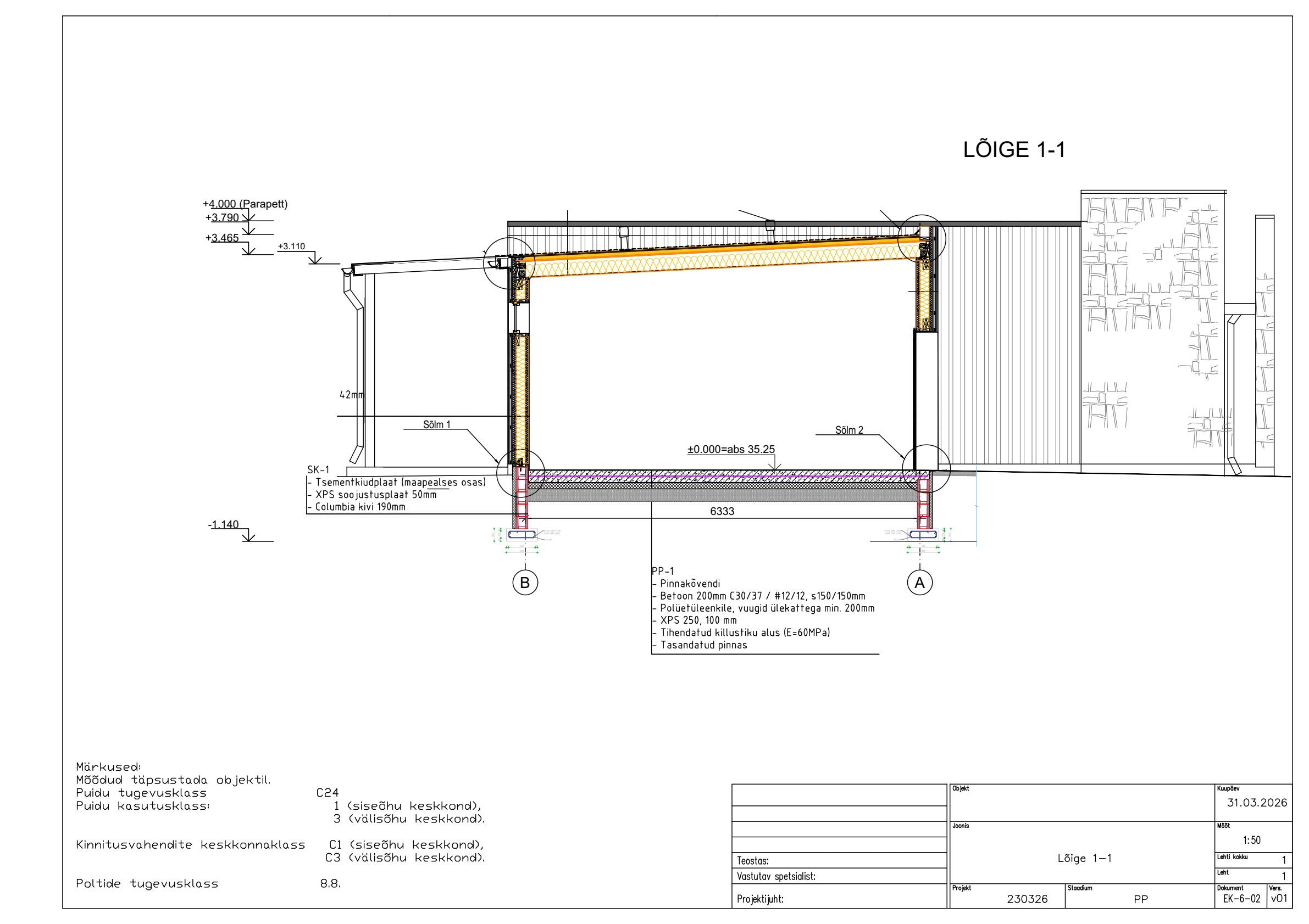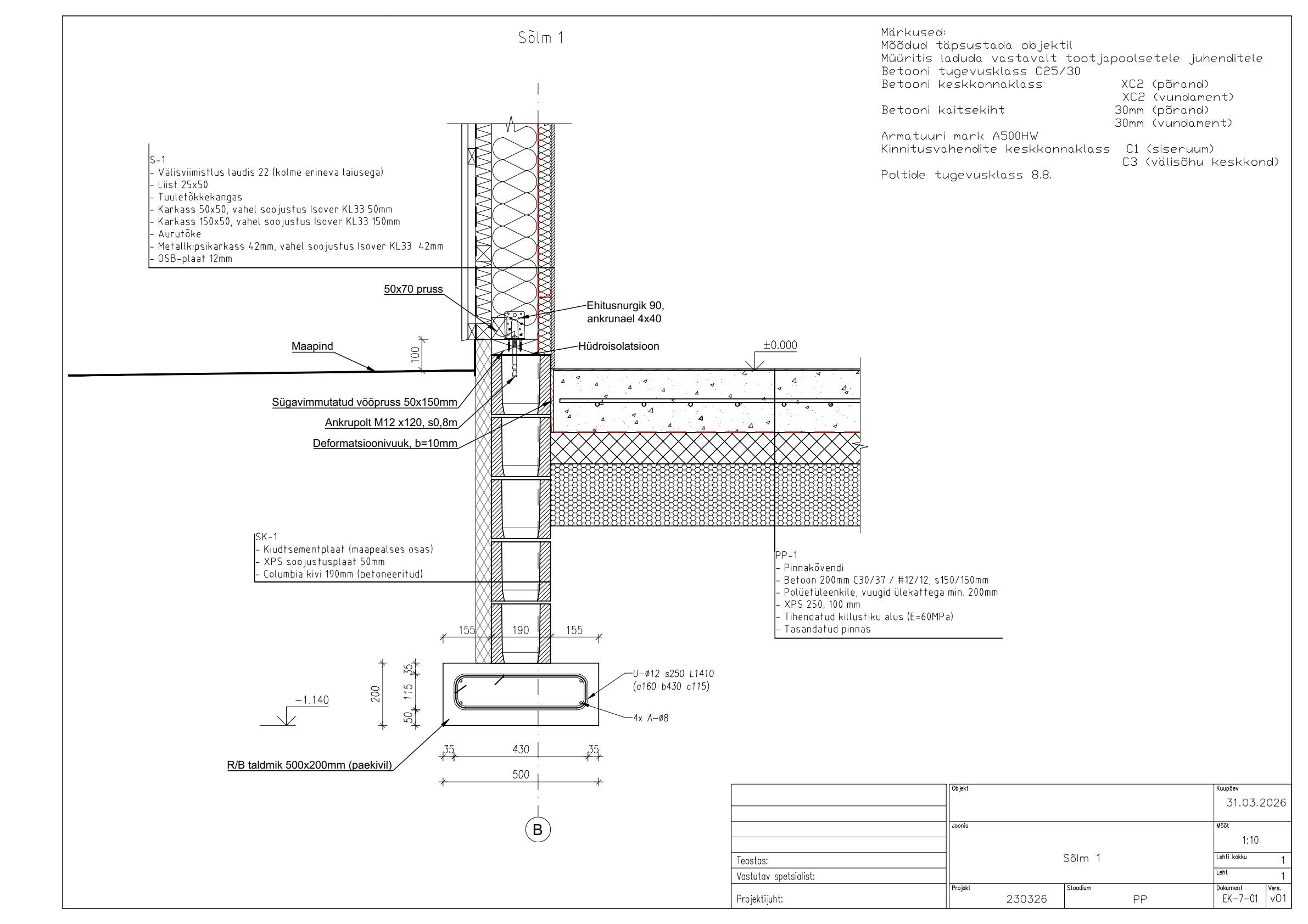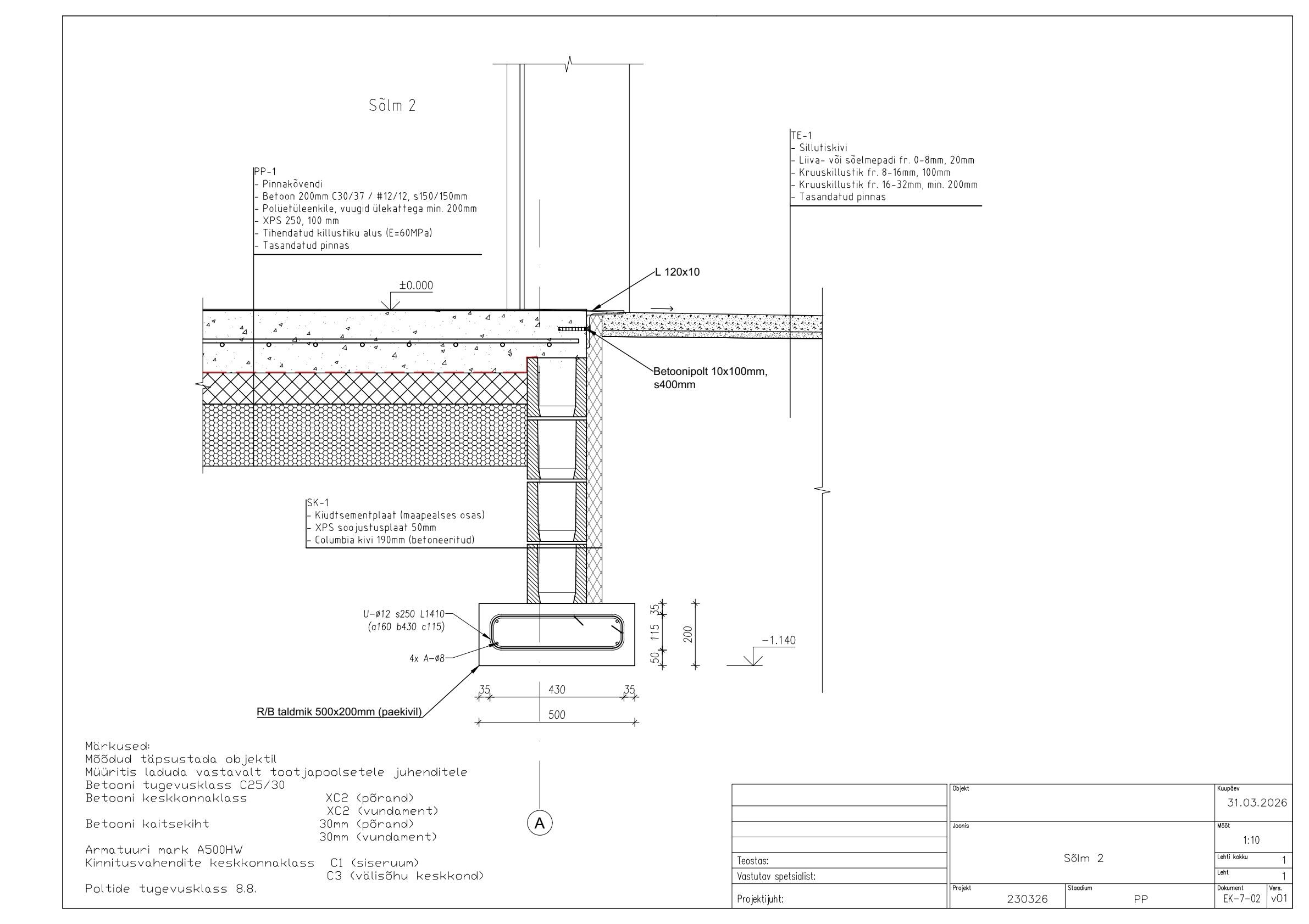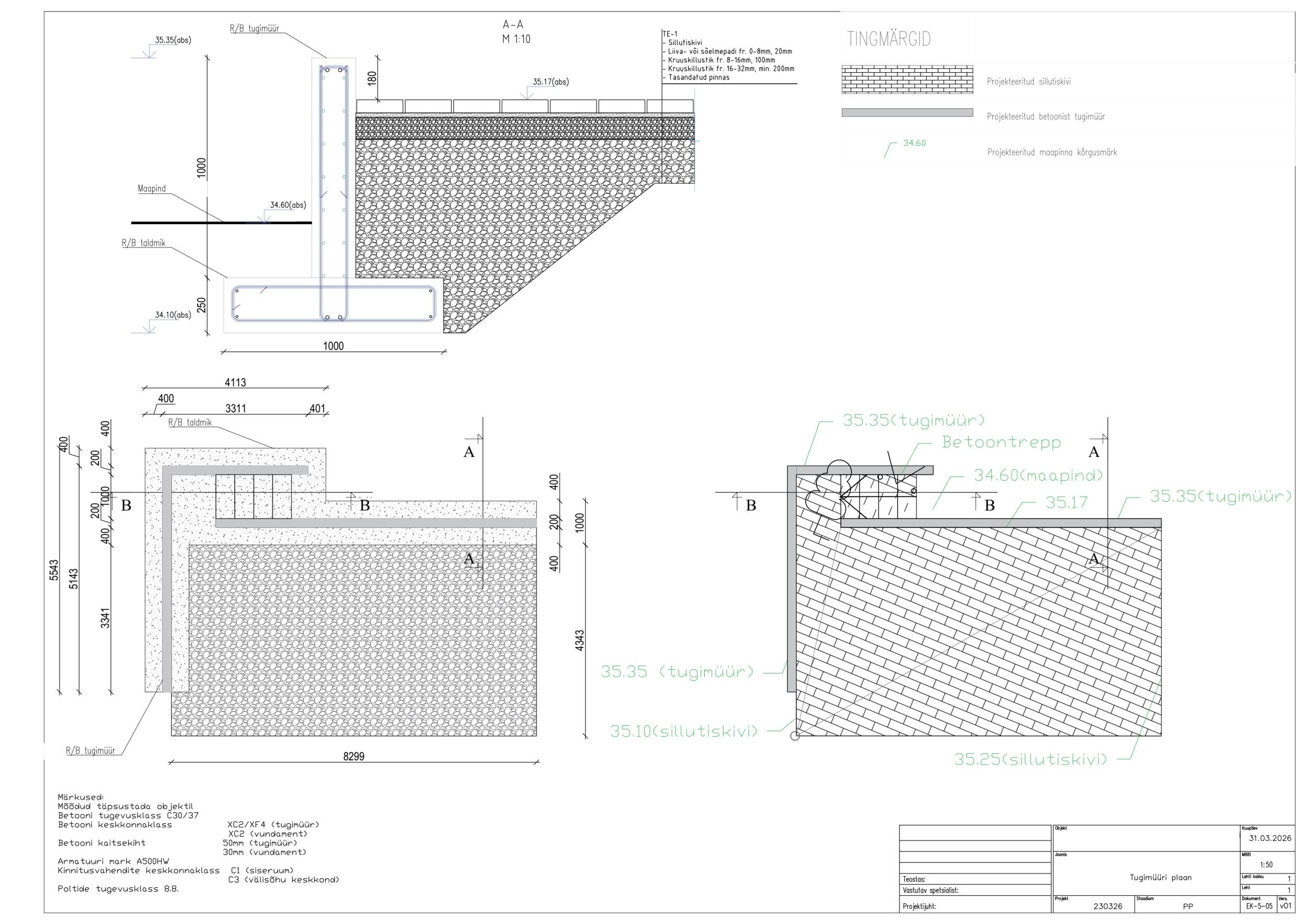 Betooni klass on C30/37. Armatuuri klass on A500W.