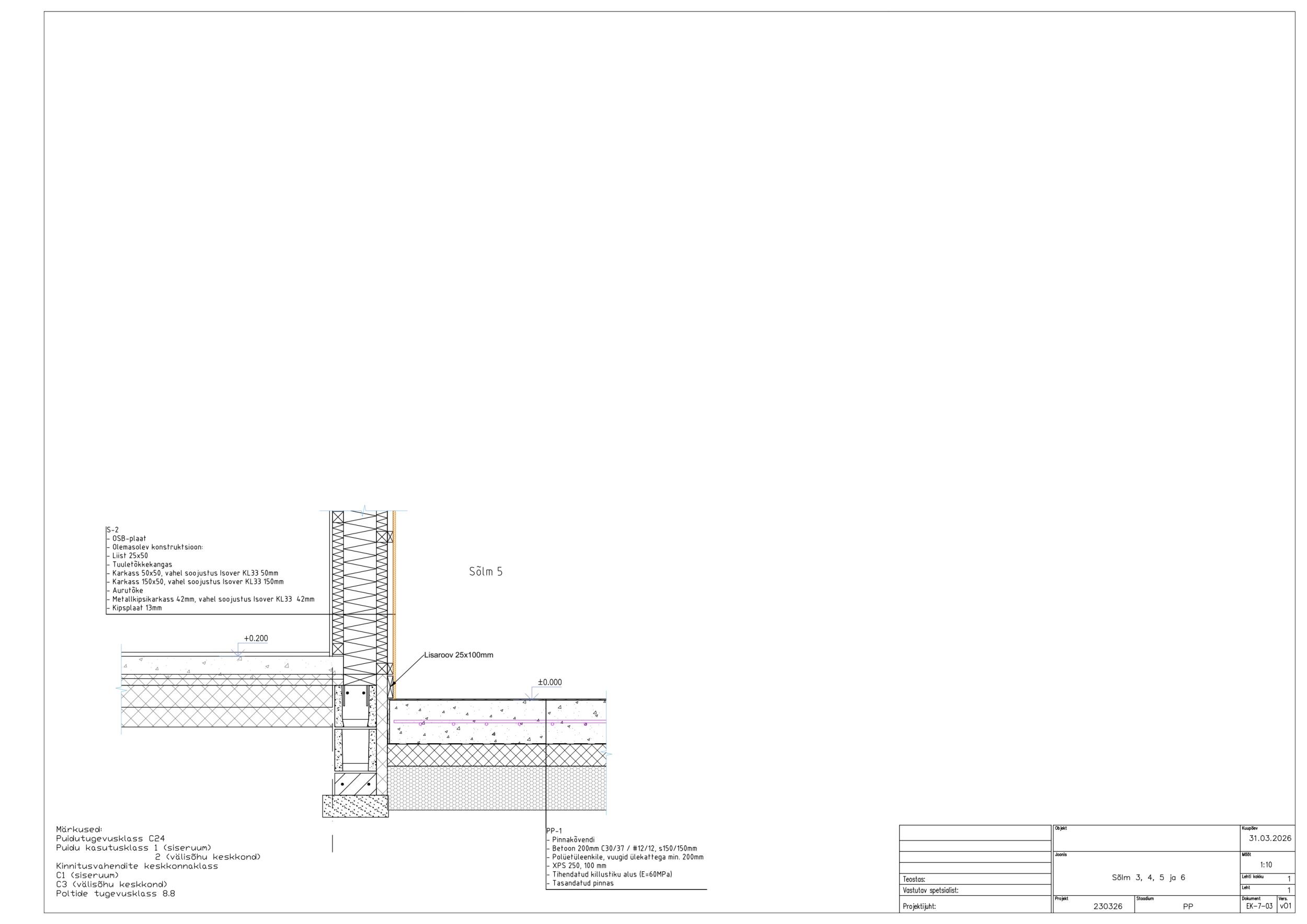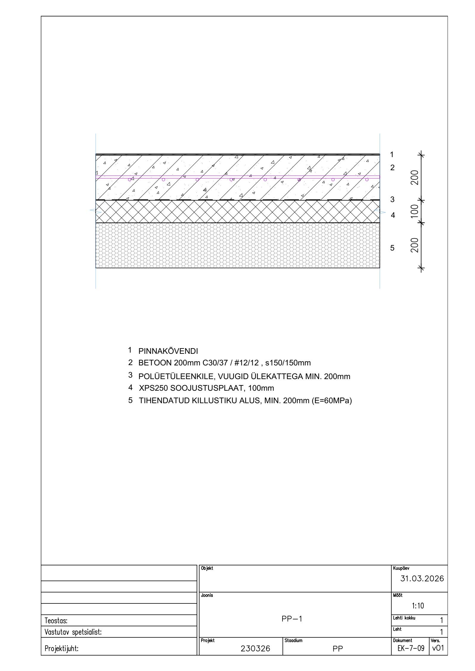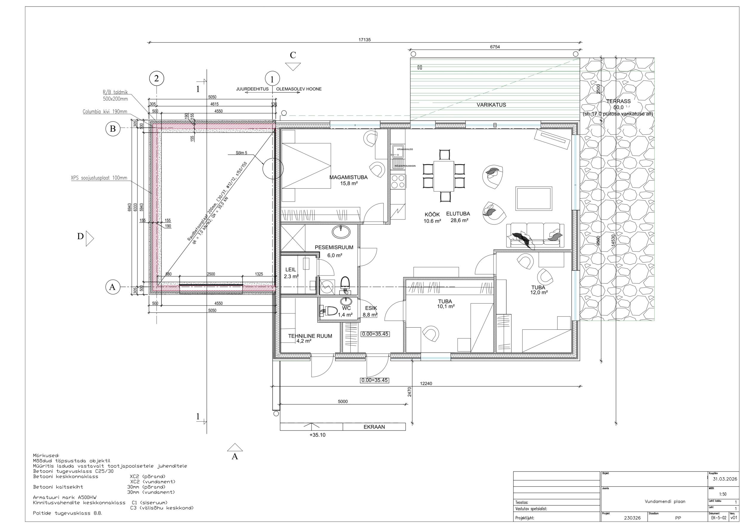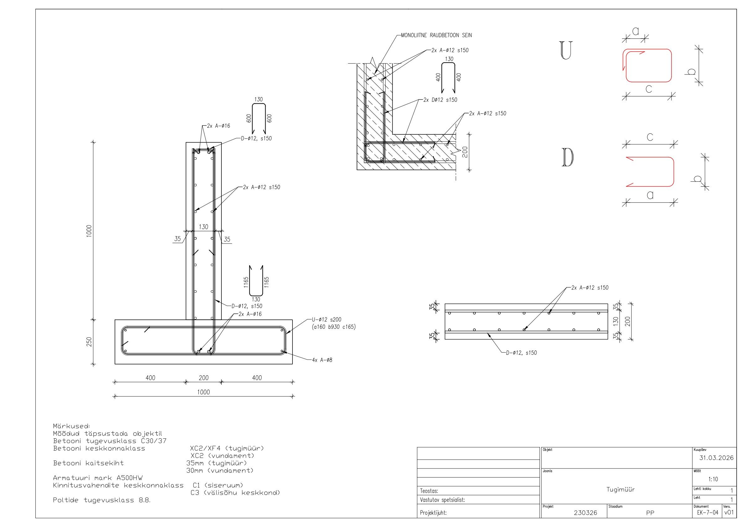 Betooni klass on C30/37. Armatuuri klass on A500W.
