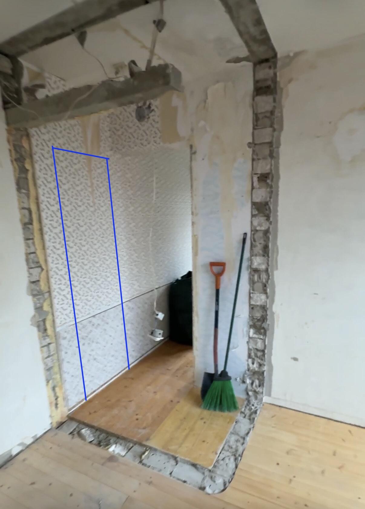 Vannitoa olemasoleva ukse eemaldamine + ava kinni ladumine ja uude asukohta ava tekitamine.
