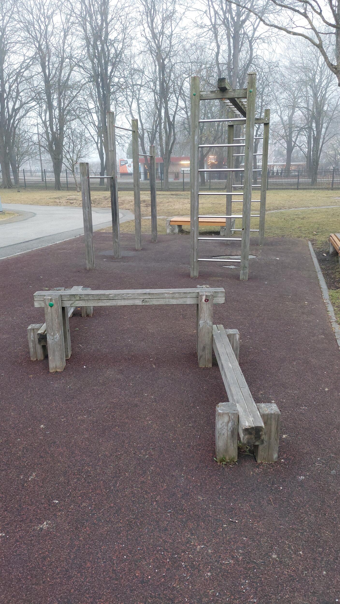 Kooli tervisespordikompleksi, mis on pikaajalise ilmastikutingimuste tõttu tugevalt kahjustunud ja osaliselt kõdunenud, seadmete (poom, rippkangid ja-redel) demonteerimine ning kogu kompleksi pinna kummikatte eemaldamine. Samuti seadmete tugijalgade eemaldamisega platsi asfaltkattes tekkinud aukude täitmine külmasfaldiseguga ja selle viimistlemine.